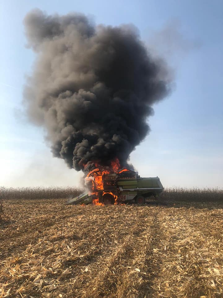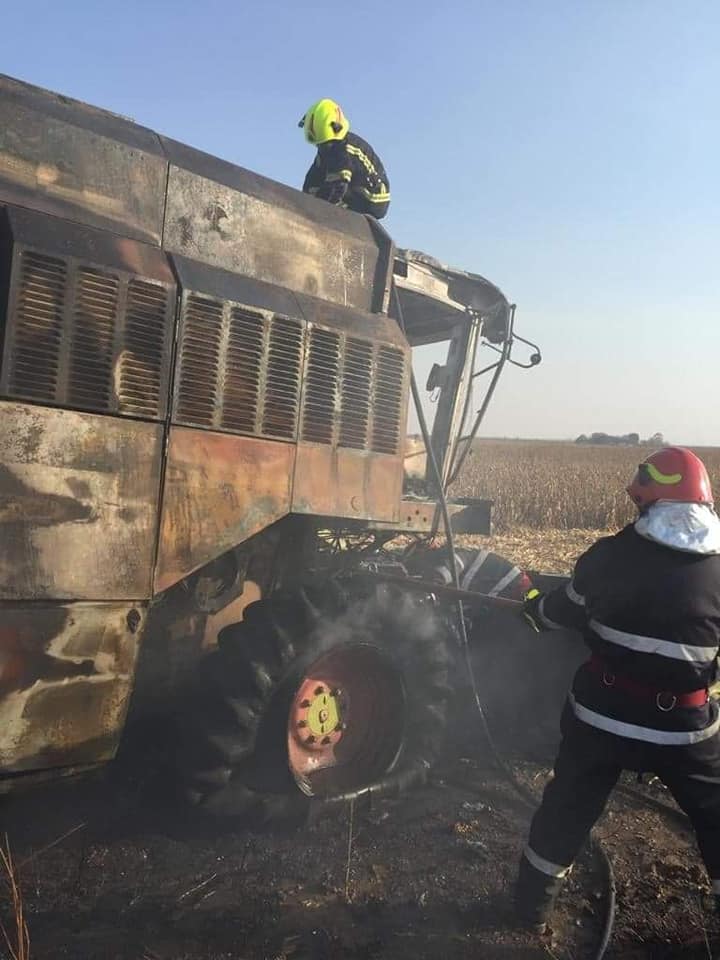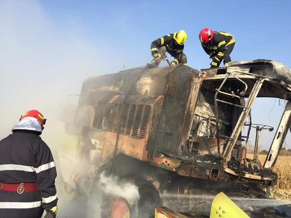 Un puternic incendiu a izbucnit astăzi pe câmp la un utilaj agricol (combină) aflat în funcțiune pe un teren din apropierea orașului Livada.