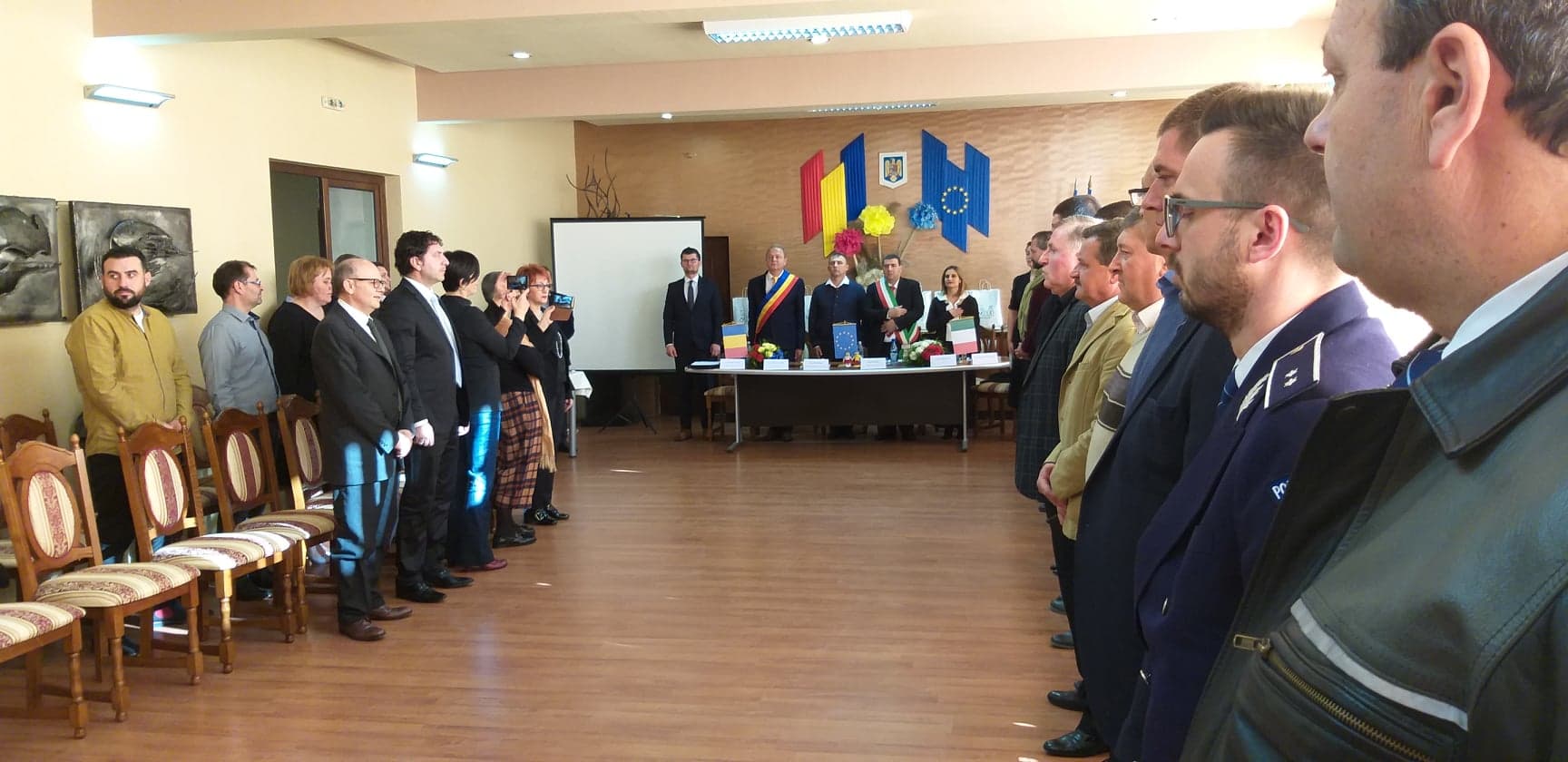 În deschiderea festivității au fost intonate imnurile României, Italiei și Uniunii Europene. La eveniment au participat delegații ale celor două localităţi, formate din consilieri locali, primari și reprezentanți ai unor asociații din domenii de interes comun.