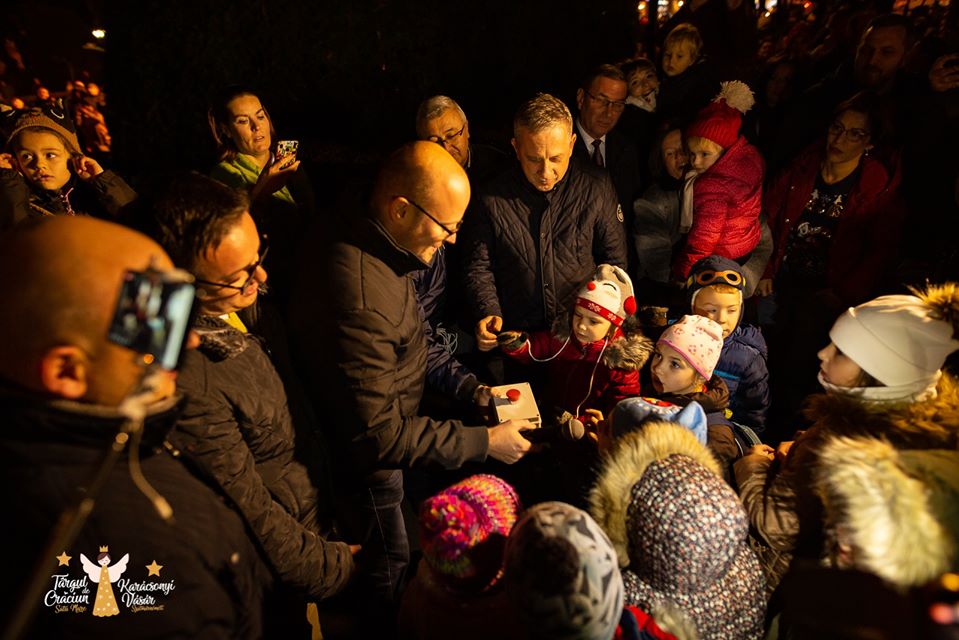 Primarul municipiului Satu Mare alături copiii adunați în jurul bradului au aprins astăzi luminițele care împodobesc orașul! Atmosfera este magică și în Piața 25 Octombrie! Vă așteptăm să ne bucurăm împreună de surprizele care vor. Colaborarea fructuoasă dintre Consiliul Județan și Primăria Municipiului Satu Mare se concretizează și prin organizarea comună a Târgul de Crăciun Satu Mare 2019. Astfel, cele două instituții aduc momente de bucurie și splendoare pentru toți, adulți și copii.