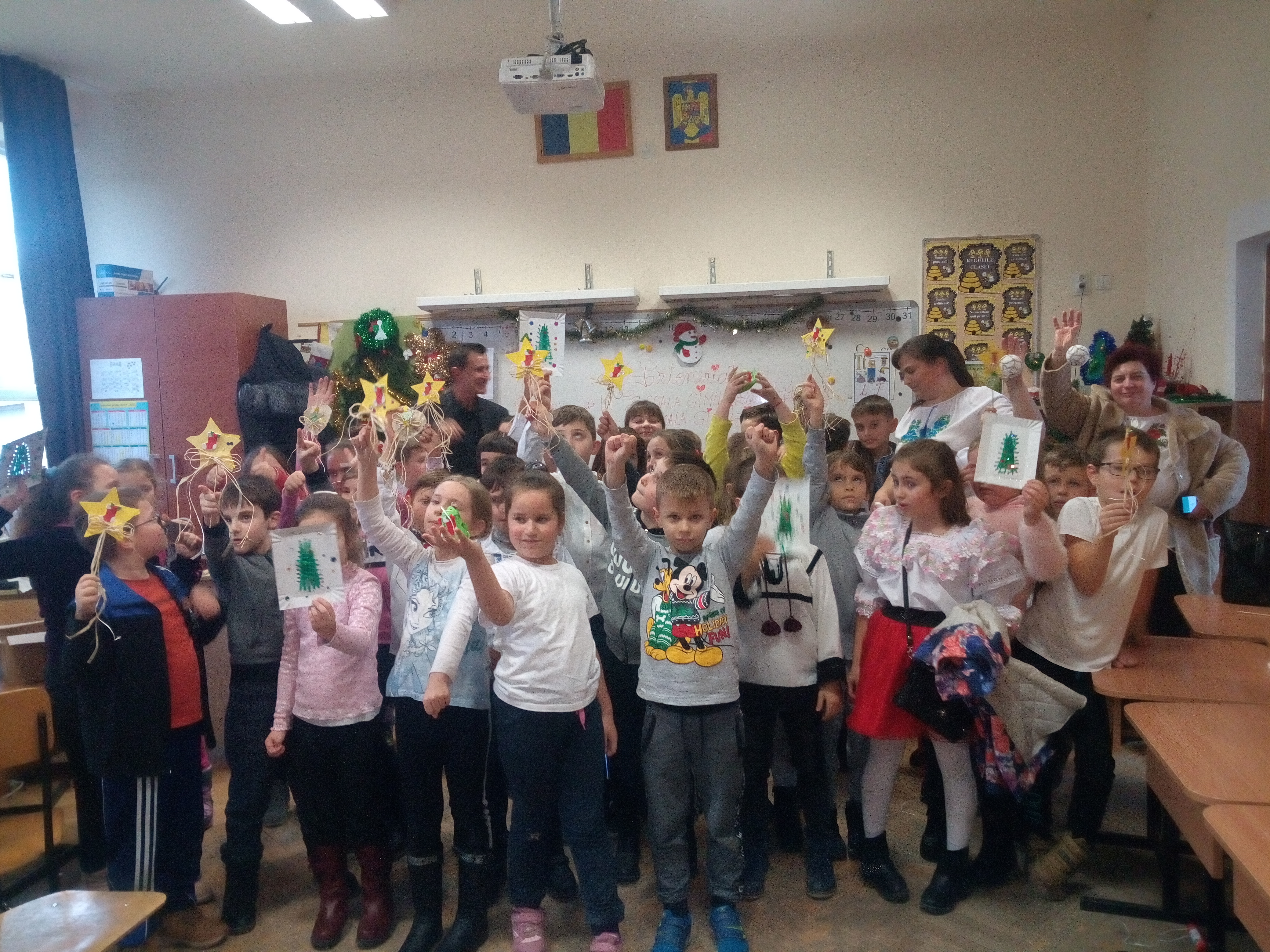 S-a trecut apoi, la activităţi în „atelierele creative ale lui Moş Crăciun”, unde împreună cu elevii şcolii gazdă, sub îndrumarea doamnelor învăţătoare, s-au realizat frumoase ornamente de brad din materiale reciclabile. Cei prezenţi au făcut schimb de mici atenţii confecţionate de ei înşişi.