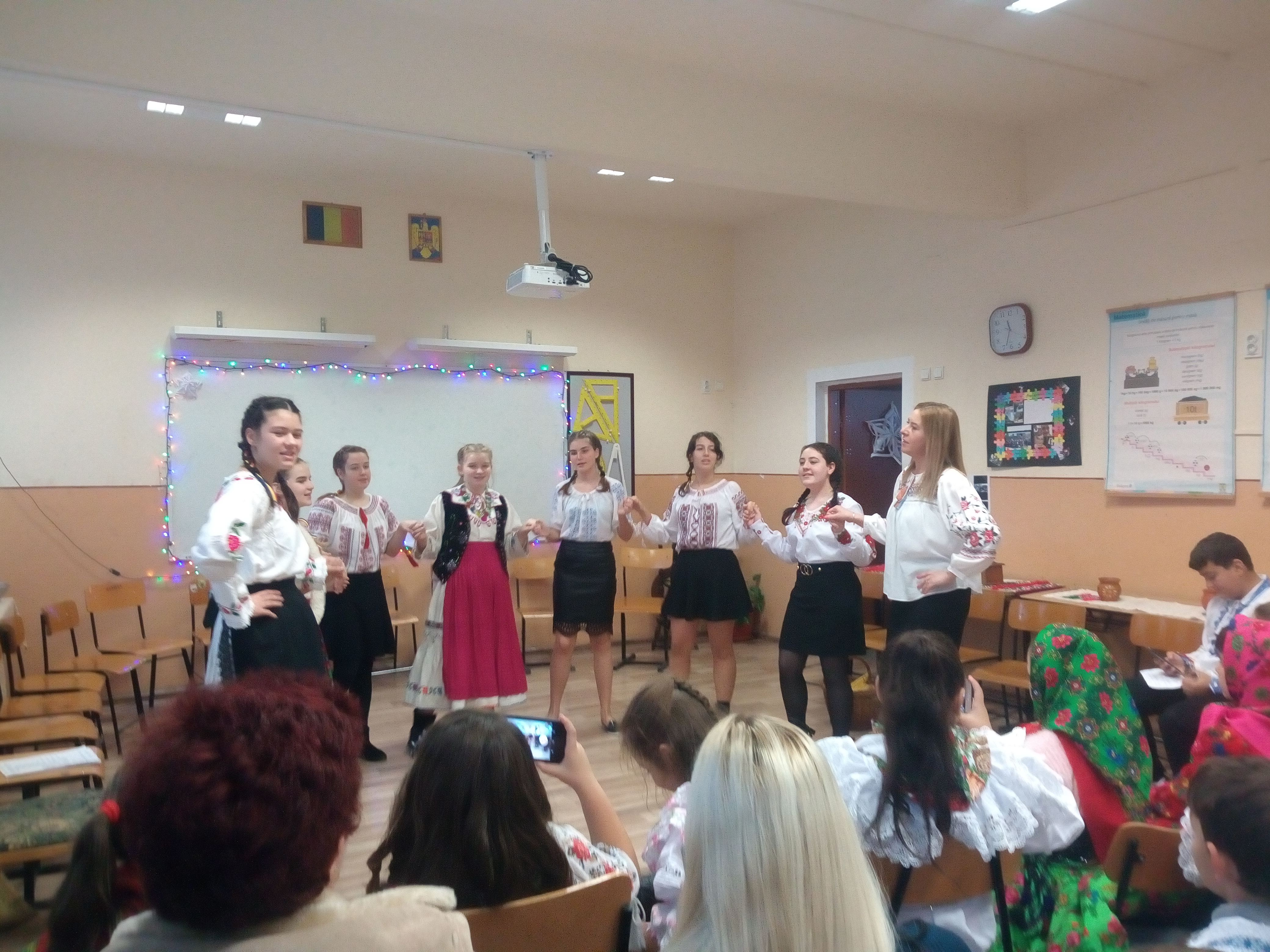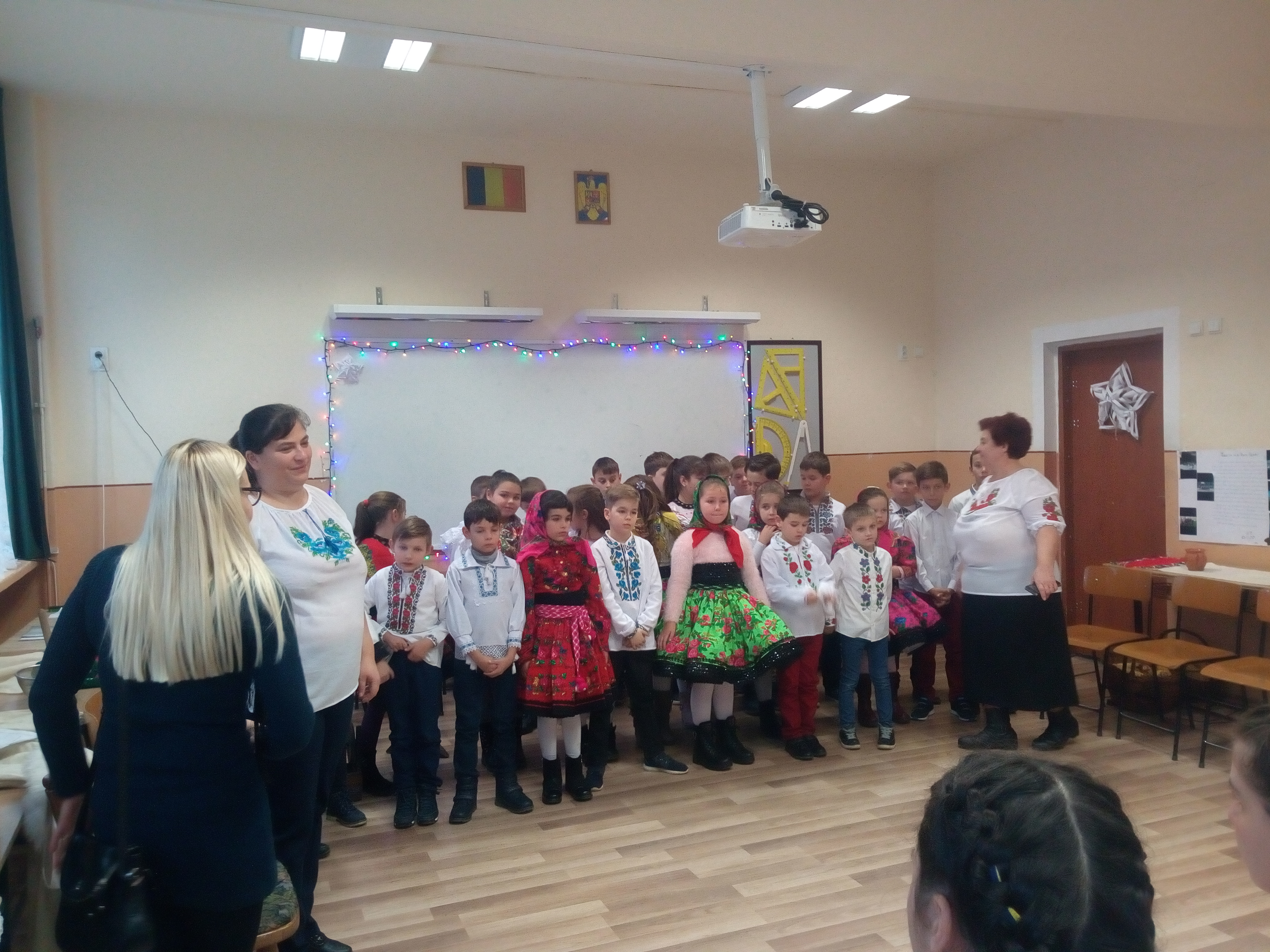 După primirea oferită micuţilor oaspeţi de către conducerea instituţiei gazdă, elevilor din clasele I şi a III-a îndrumaţi de către doamnele lor învăţătoare, Lucia Mic și Stela Bănăţeanu li s-au oferit momente specifice acestei perioade a Sărbătorilor de iarnă. Astfel, aceştia au participat la un frumos program artistic cu colinde tradiţionale interpretate de către elevii clasei I A, coordonaţi de doamna învăţătoare Maria Donuţiu şi o şezătoare prezentată de către elevii clasei a VII-a A coordonaţi de doamna profesoară de limba română, Angela Domuţa.