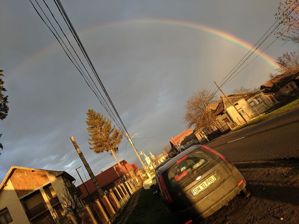 Azi dimineață, însă, toți acești factori și-au dat întâlnire pe cerul Sătmarului și au format acest frumos curcubeu.