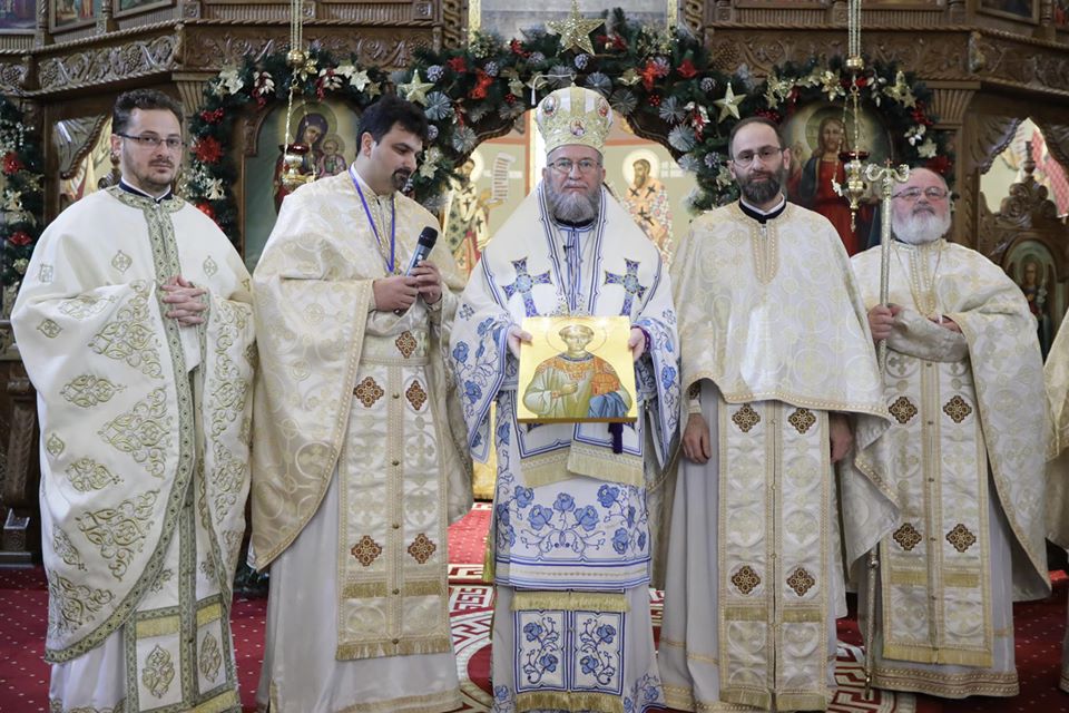La rândul său, ierarhul a primit în dar o icoană a Sfântului şi Întâiului Mucenic şi Arhidiacon Ştefan, care se prăznuieşte a treia zi de Crăciun, care, în Episcopia Maramureşului şi Sătmarului are dublă semnificaţie: întronizarea Preasfinţitului Părinte Episcop Iustin şi Ziua tinerilor din Episcopie al căror ocrotitor este.