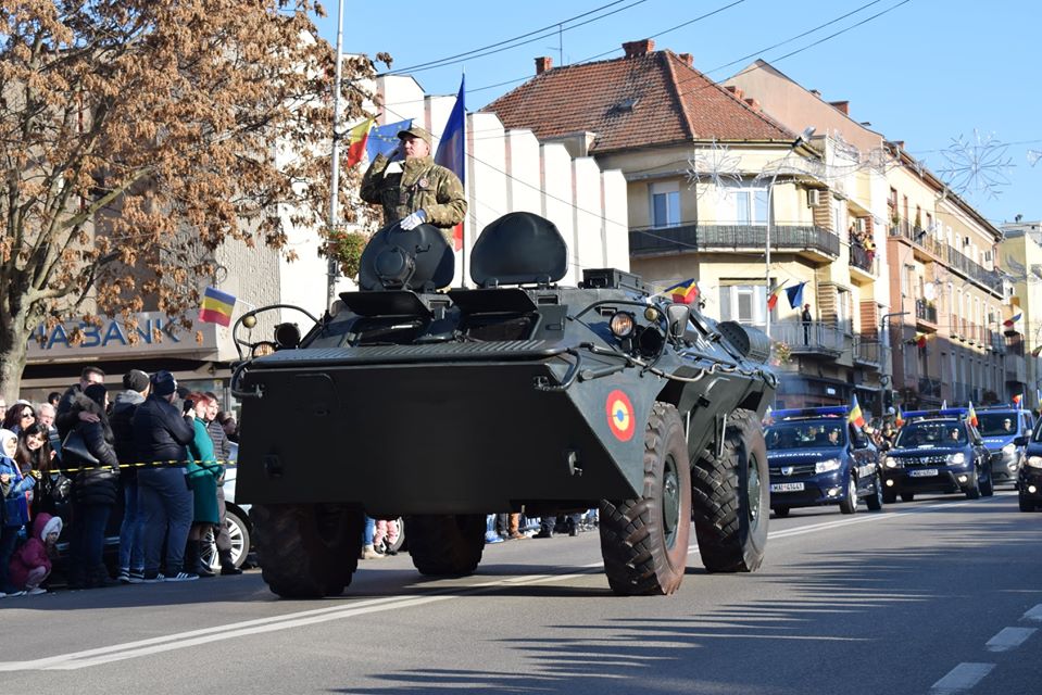 După ce au fost depuse coroane de flori din partea autorităților județene și locale, a urmat parada militară. care a fost deschisă de garda de onoare. Prin fața miilor de sătmăreni au mai defilat un TAB al armatei, tehnica și dotarea pompierilor, polițiștilor, polițiștilor de frontieră, a jandarmilor și altor structuri militarizate.