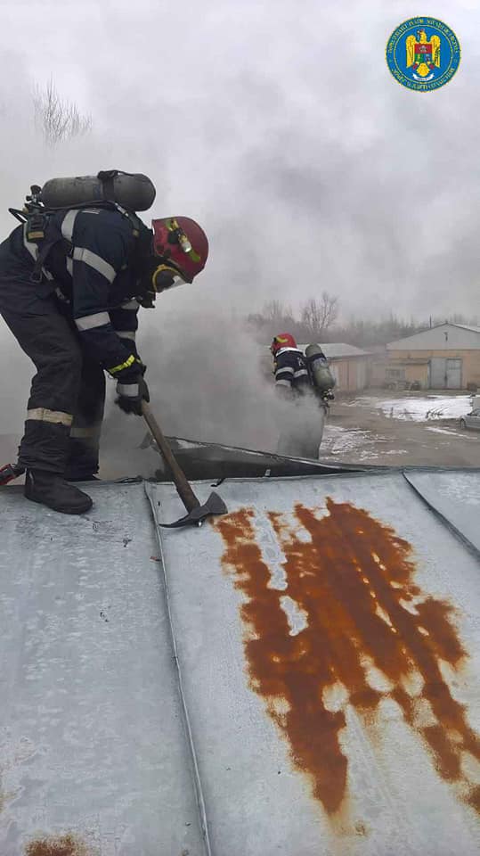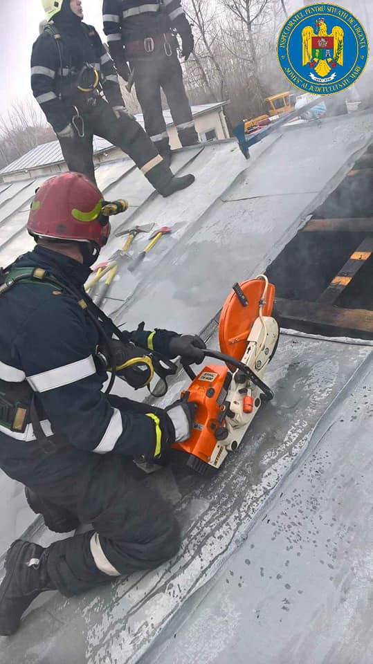 În incendiul izbucnit, cel mai probabil, din cauza coşului de evacuare a fumului neizolat termic faţă de materialele combustibile din structura acoperişului, nu a fost surprins nici un angajat.