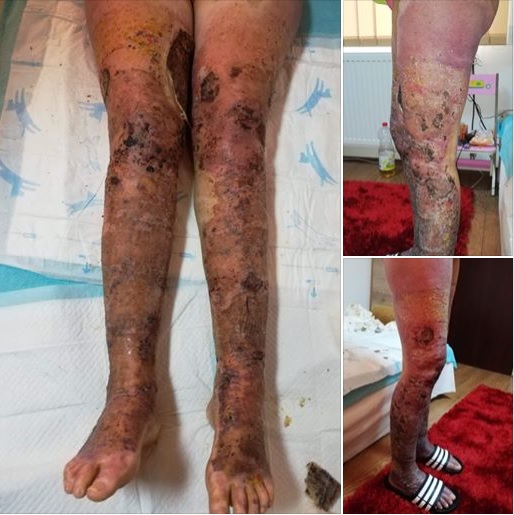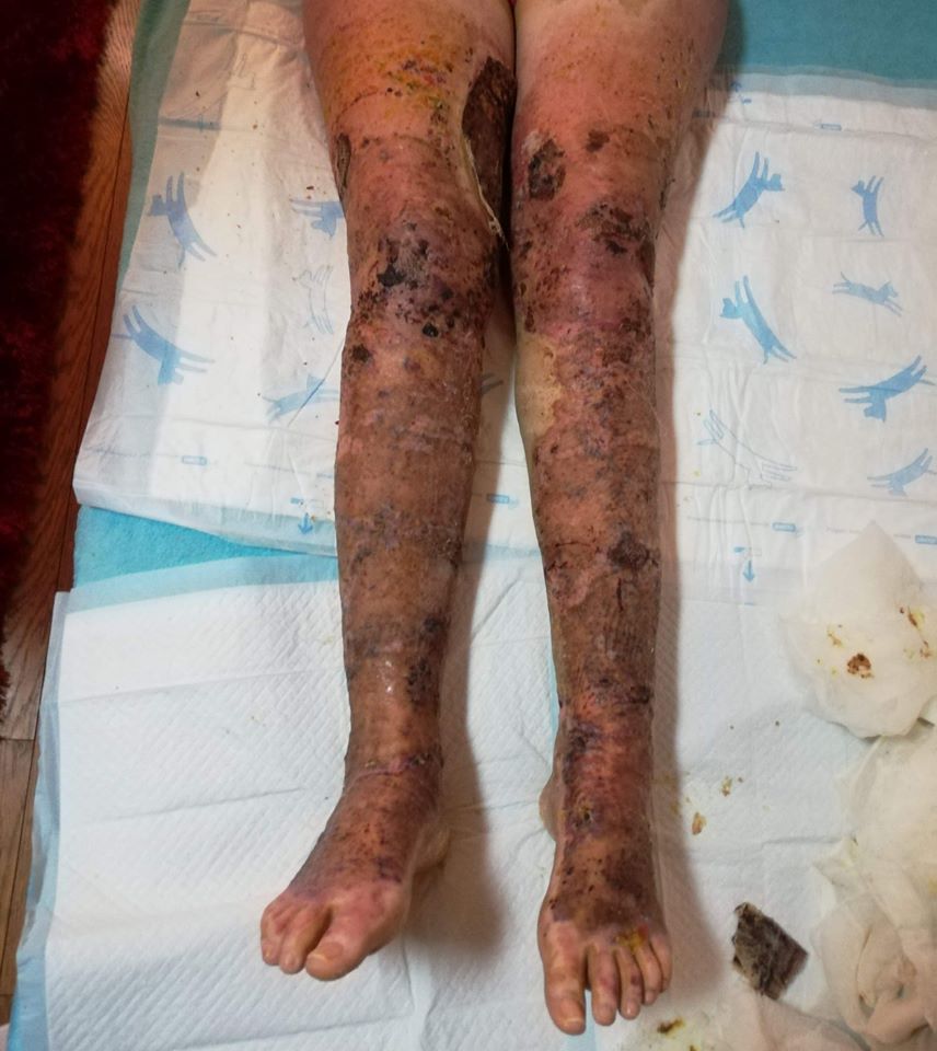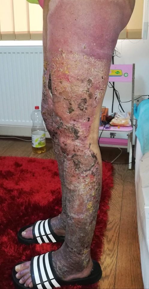 Așa sunt externați arșii din România, ca în imaginile prezentate aici. Răni mari, deschise, pe alocuri infectate, extrem de dureroase și imposibil de tratat acasă. Picioarele îi aparțin lui Berni (21 de ani), care a fost rănită într-o explozie petrecută într-un apartament din Satu-Mare. Disperată și confuză, sora ei, Andreea, le cere ajutorul tuturor celor care o pot face.