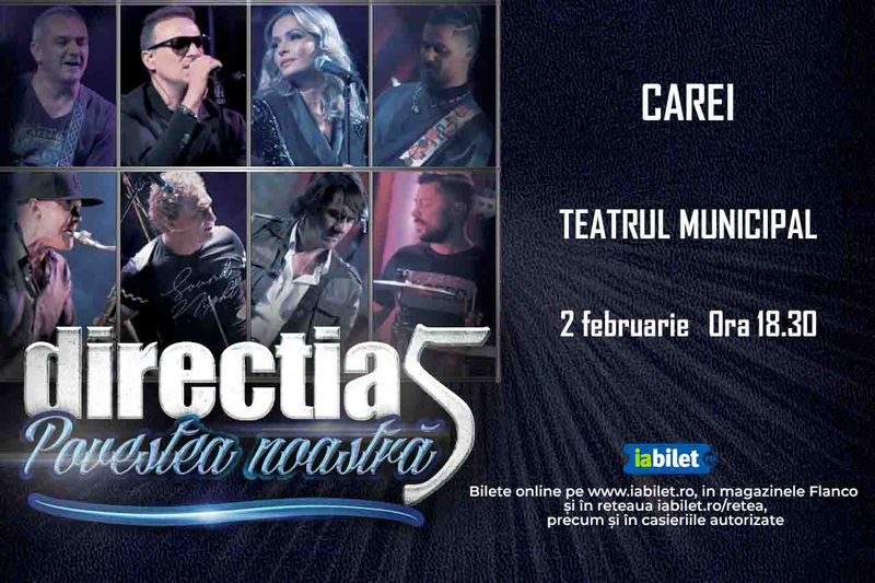 Cunoscuta trupă românească Direcția 5 va susține un super-concert la Carei. Evenimentul va avea loc la Teatrul Municipal Carei în data de 2 februarie, de la ora 18.30.