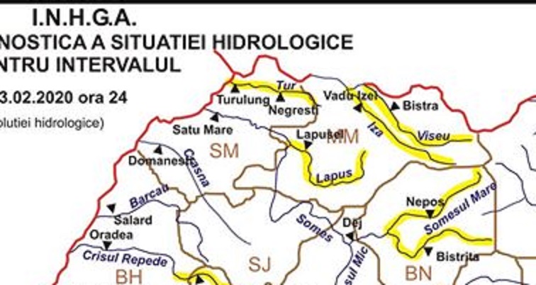 Potrivit meteorologilor, în intervalul 03.02.2020 ora 06:00 – 03.02.2020 ora 24:00, codul galben de inundații a fost instituit pe râurile din bazinele hidrografice: Vişeu, Iza, Tur (judeţele: Maramureş şi Satu Mare), Someşul Mare – bazin superior şi afluenţi bazin mijlociu şi inferior (judeţul Bistriţa Năsăud), Someşul Mic – bazin superior şi afluenţi bazin mijlociu şi inferior, Someş – afluenţii aferenţi sectorului aval S.H. Dej, Lăpuş (judeţele: Cluj, Bihor, Sălaj, Maramureş şi Satu Mare), Crişul Repede – bazin superior şi afluenţi bazin mijlociu, Crişul Negru – bazin superior şi afluenţii aferenţi sectorului amonte S.H. Tinca, Crişul Alb – bazin superior amonte S.H. Gurahonţ (judeţele: Cluj, Sălaj, Bihor, Arad şi Hunedoara), Arieş – bazin superior şi afluenţi bazin mijlociu şi inferior (judeţele: Alba şi Cluj).