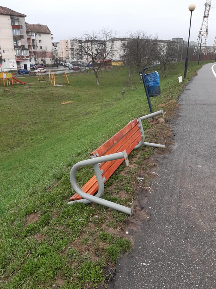 Unii sătmăreni certați cu bunul simț și cu siguranță cu cei 7 de ani de acasă făcuți la fără frecvență au făcut prăpăd în zona digului...Iar un coș de gunoi și o bancă au fost smulse din pământ de zici că prin zonă a trecut un uragan...