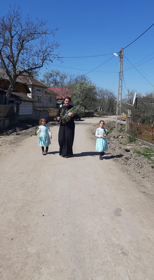 Astăzi,după Sfânta și Dumnezeiasca Liturghie, am fost pe întreg satul, la fiecare casă și am împărțit ramuri sfințite cu ocazia Sărbătorii Floriilor.