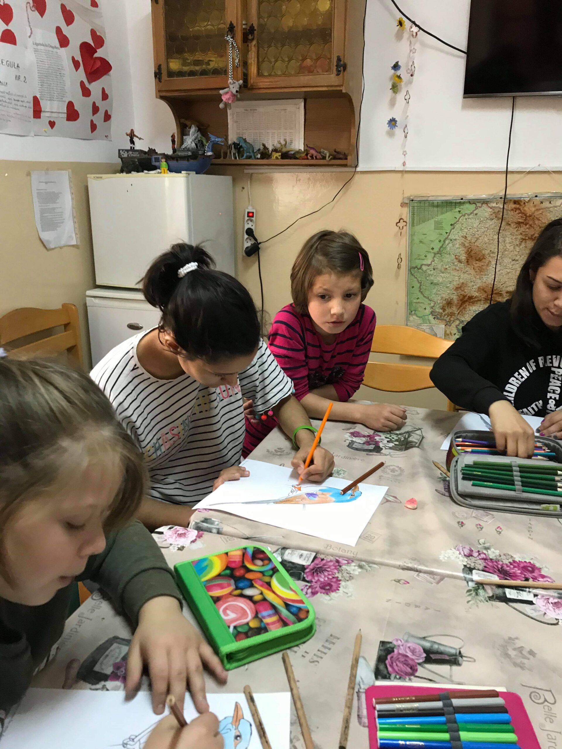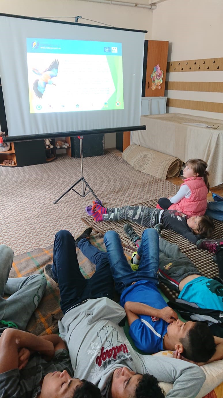 Vizionarea documentarelor a fost urmată de completarea unui chestionar în vederea evaluării cunoștiințelor dobândite despre cea ce reprezintă natura/mediul încojurător pentru tânăra generație, după care aceștia au petrecut împreună câteva minute de delectare prin reprezentarea coloristică a specie prezentate – Dumbrăveanca (Coracias garrulus).