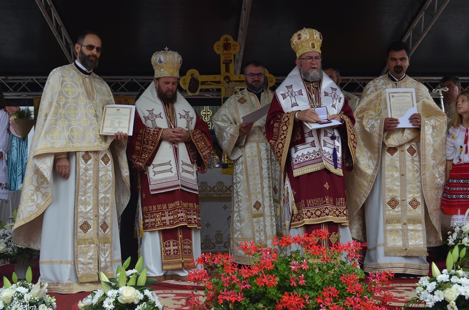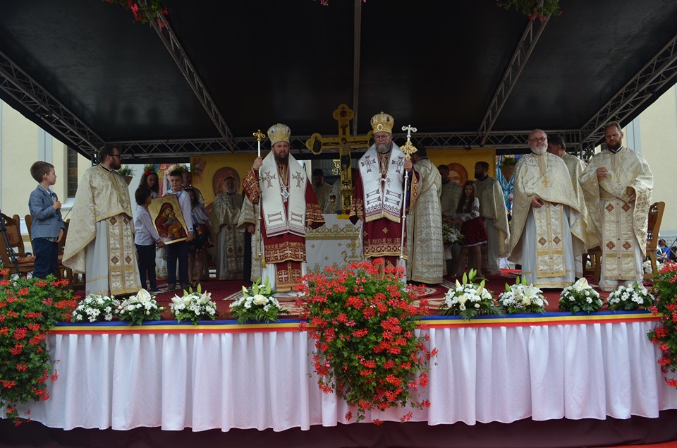 Slujba de sfinţire şi Sfânta Liturghie Arhierească au fost oficiate de către Preasfinţitul Pǎrinte Dr. Iustin, Episcopul Maramureşului şi Sătmarului şi de cǎtre Preasfinţitul Pǎrinte Dr. Timotei Sǎtmǎreanul, Arhiereu-Vicar al Episcopiei Ortodoxe Române a Maramureşului şi Sǎtmarului, înconjuraţi de un frumos sobor de preoţi şi diaconişi de credincioşii sǎtmǎreni, respectându-se toate reglementǎrileimpuse de autoritǎţi, generate de pandemia de COVID-19.