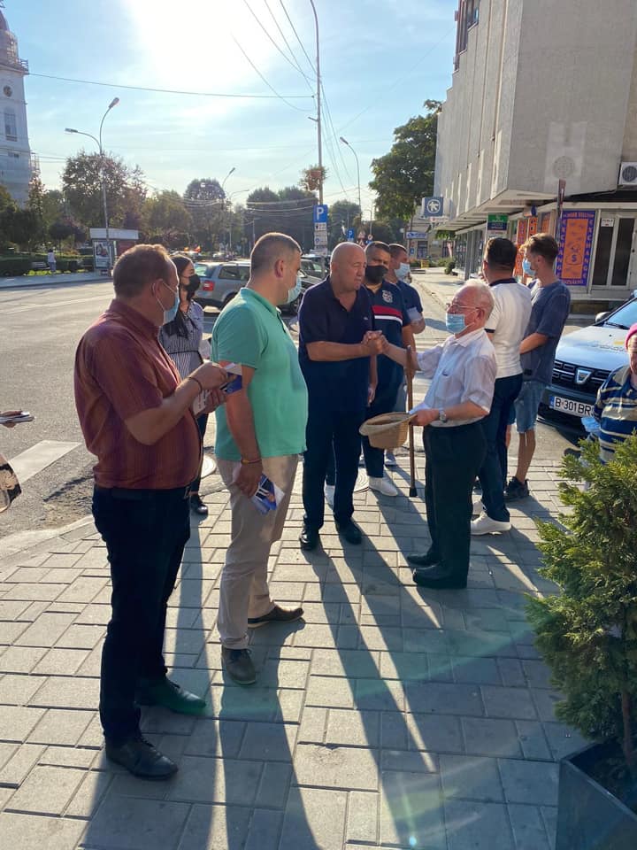 Candidatul PSD la Primăria municipiului Satu Mare, dr Coica Dorel, senatorul și președintele organizației municipale, Gabriel Les, președintele executiv, Ciprian Craciun, secretarul executiv, Cecilia Marinescu, candidații la Consiliul Local al municipiului, Cristina Ilieș, Eugenia Sabau, Alina Chiș, Ciprian Tișea, Alina-Fulga Domokos, Sebastian Petrut , Ioan Balta și staful de campanie au vrut să discute față in față cu sătmărenii și să le audă părerea despre cum arată orașul Satu Mare.