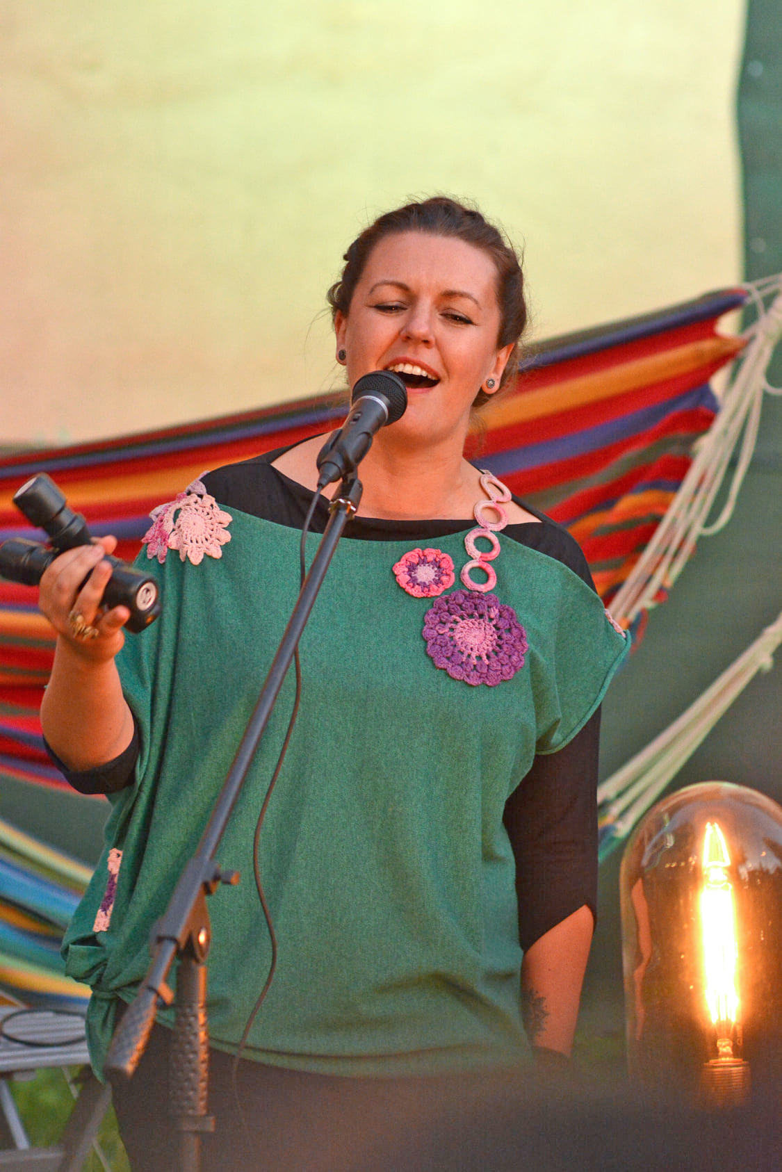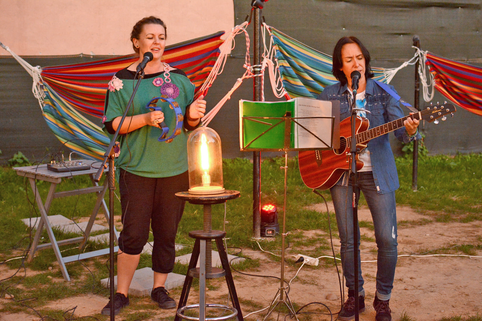 De data aceasta au urcat pe scena amenajată în curtea barului Moose, două voci de anvergură, care până acum au performat doar în faţa prietenilor, şi pe care sperăm să le mai auzim de acum înainte pe scenele sătmărene la evenimnete şi mai serioase. Este vorba de Anna Alcazar Rios (tamburină) şi Monica Ivan ( chitară) acompaniate excelent acustic de către Francisc Edmund Balogh.