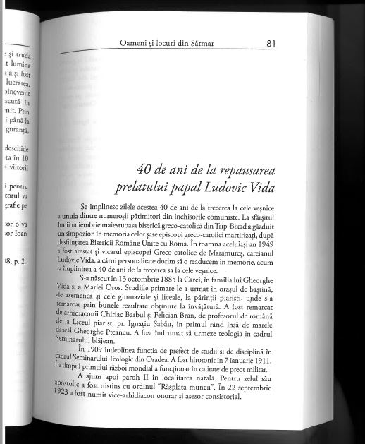 Convingerile sale religioase, acelea de a nu trăda, de a nu accepta trecerea la altă religie, l-au costat ani grei de închisoare. Compromisul unei trădări sub forma semnăturii era cu neputinţă din partea vicarului general Ludovic Vida. Iată o pildă vie pentru tinerii de astăzi – perseverenţa într-o ţinută morală demnă.
