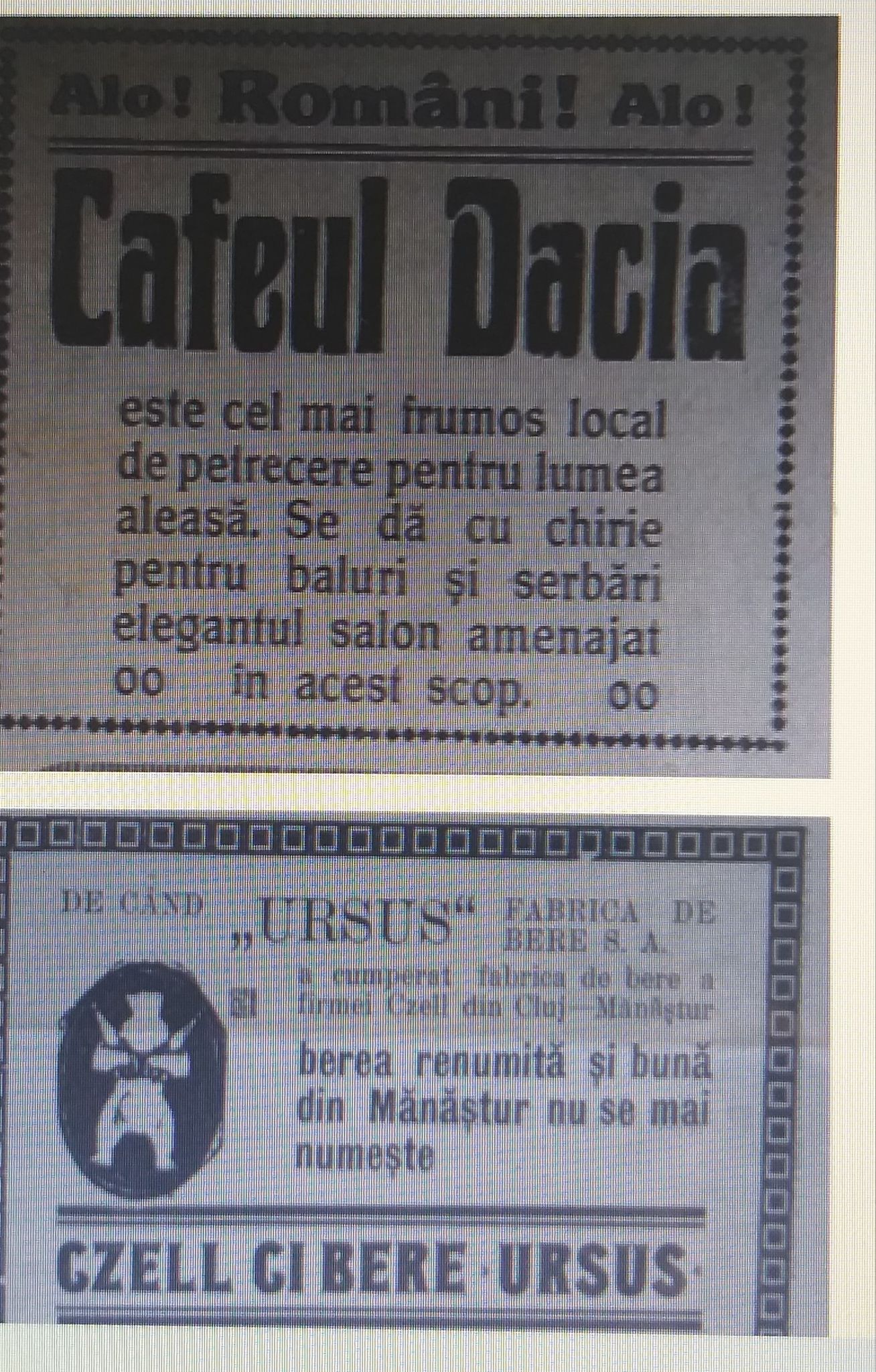 Tipografii, restaurante, medici, toţi aveau nevoie de publicitate. Folosind mai mult sau mai puţin imaginaţia, textele din anunţuri vorbesc strict despre facilităţile oferite, servicii, calitate și preţ. Acestea sunt elementele pe care le găsim și în anunțurile date de cafenelele Dacia sau Victoria: „Varieteu în fiecare seară la cabaretul Victoria Bébé Mandy Const. Comicul român cel favorit. Cu începere de sâmbătă. Lia Amorette, dansatoare română, Albin Boriss cu noui dansuri. Afară de aceste reprezentația tuturor artiștilor. Cercetați cabaretul Victoria! Local distins și cu program artistic”. „Cel mai frumos Cafeu Dacia, reînovat modern, cu serviciu prompt, unde concertează în fiecare seară Horvath Jancsi cu renumita sa orchestră. Cel mai elegant local de distracție pentru familii. Bufet asortat”. „Alo! Români! Alo! Cafeul Dacia este cel mai frumos local de petrecere pentru lumea aleasă. Se dă cu chirie pentru baluri și serbări elegantul salon amenajat în acest scop.”