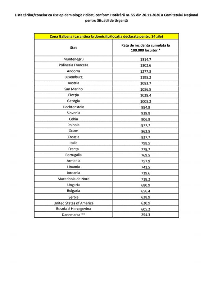 Prin această hotărâre a fost #actualizată #lista #țărilor și #zonelor de #risc #epidemiologic pentru care se instituie măsura #carantinei asupra persoanelor care sosesc în România.