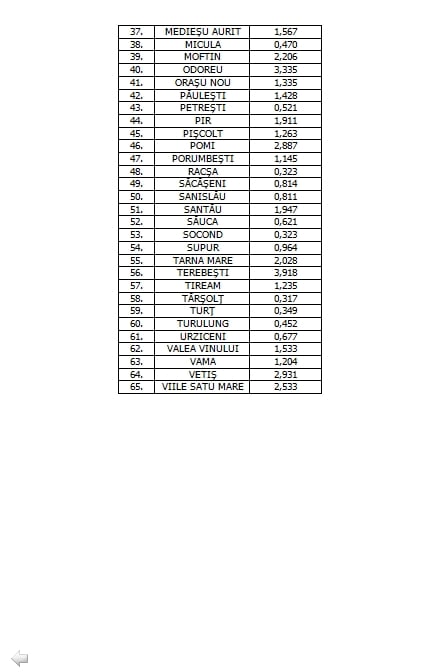 Astfel, dacă municipiul Satu Mare, cu o incindență a bolii de 3, 789 cazuri la mia de locuitori, și Odoreul, cu 3,335 cazuri la mia de locuitori, se aflau și până acum în top, surprinde, în schimb, noul lider.