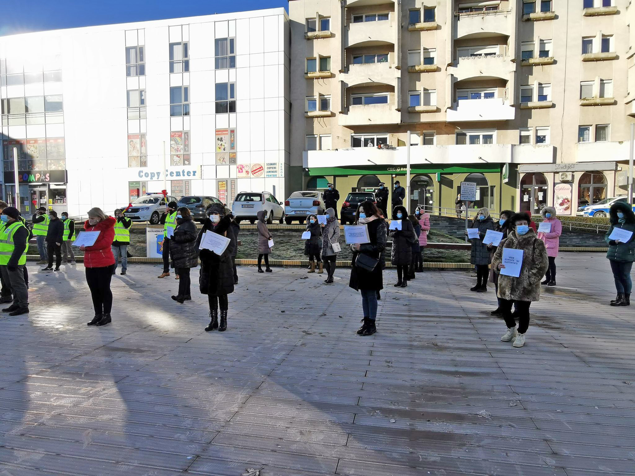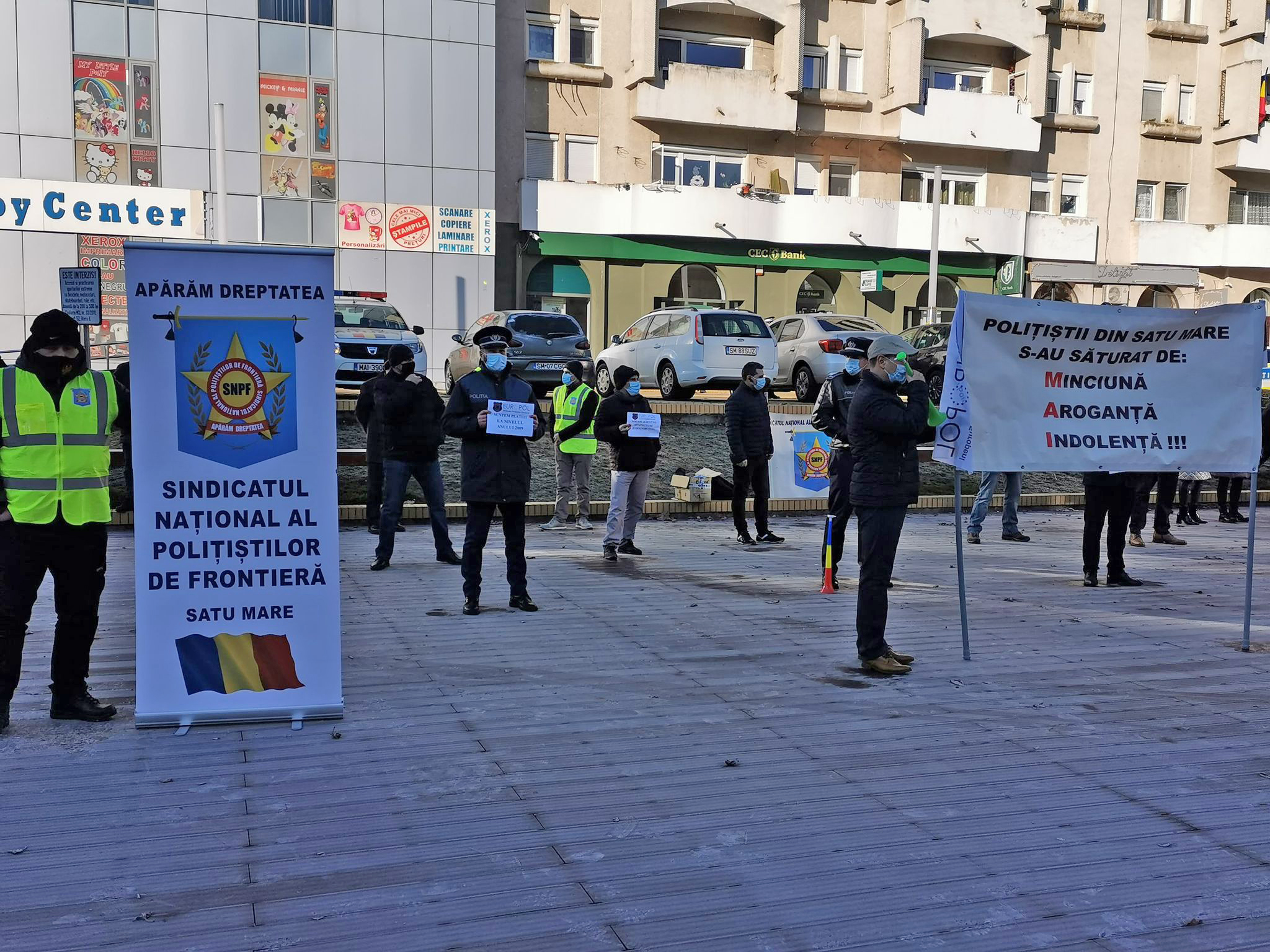 Lucrătorii din cadrul MJ - ANP - Penitenciarul Satu Mare, lucrătorii de poliție din cadrul IPJ Satu Mare, Inspectoratul Județean al Poliției de Frontieră, Poliția Municipiului Satu Mare și Poliția Locală, alături de grefierii din cadrul instanţelor şi parchetelor sătmărene, precum și structurile Teritoriale ale DIICOT și DNA, au ieșit ieri în stradă pentru a protesta împotriva măsurilor salariale luate de Guvernul Câțu. Acțiunea de protest de la Satu Mare a avut loc în groapa de pe Pasajul Coposu, deoarece platoul din fața Prefecturii Satu Mare, unde era anunțat înițial mitingul, se află în proces de reabilitare.