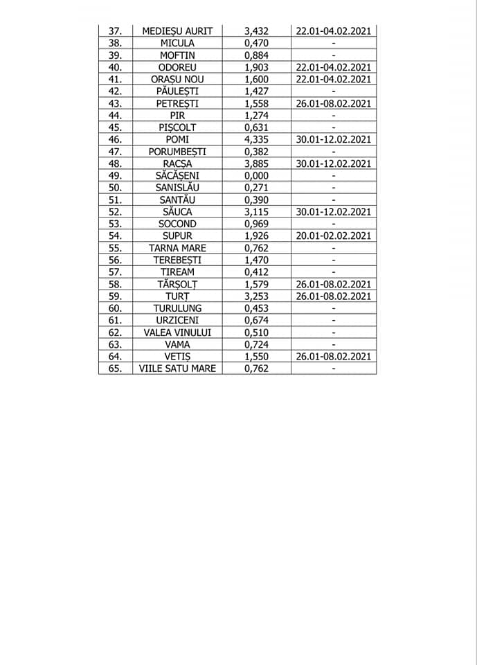 #Incidența cumulată a cazurilor pe ultimele 14 zile pe localități la nivelul județului Satu Mare în data de 29.01.2021