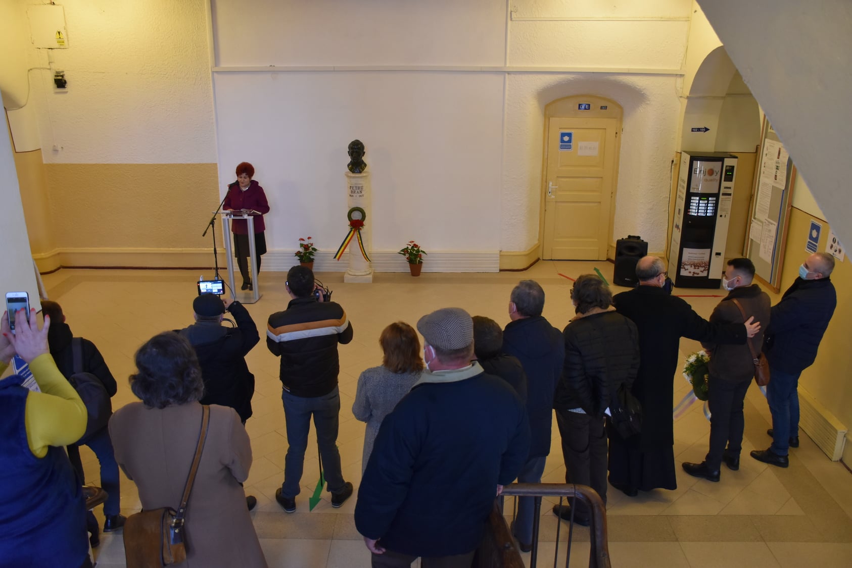 Au depus jerbe de flori din partea: Consiliului Județean Satu Mare și a Centrului Județean pentru Conservarea și Promovarea Culturii Tradiționale Satu Mare- Robert Laszlo și Felician Pop, deputatul- Adrian Cozma, inspectoarea Școlar General – Anișoara Boitor, directoarea Casei Corpului Didactic- Monica Chiș, directoarea Colegiului Național „Mihai Eminescu” – Natalia Boloș, directoarea Colegiului Național „Doamna Stanca” – Nicoleta Kichel, și părintele protopop greco- catolic – Dumitru Roman, alături de oameni de cultură din județ.