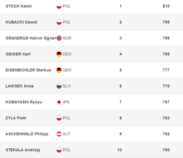 Anul acesta nu poate fi vorba despre un câștigător pe toate cele patru trambuline cum a fost Mister 50, supranumele lui Sven Hannawald la începutul mileniului sau, mai recent, Kamil Stoch și Rioiu Kobaiași. Podiumurile din primele două trambuline din acest an conțineau șase nume diferite: Geiger, Stoch, Lindvik la Oberstdorf (Satul Colonelului) și Kubacki, Granerud, Zyla la Garmisch-Patenkirchen (Ținutul Bisericilor Amestecate). În a treia etapă, la Innsbruck (Podul Hanurilor) podiumul era completat de Stoch, Lanisek și Kubacki.