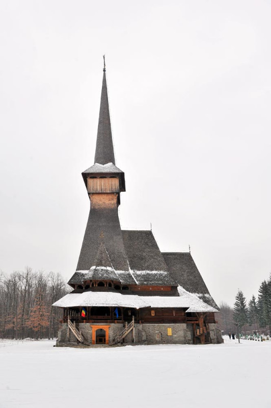 Ea a fost construită din grinzi mari din stejar, numai cu meșteri din Bârsana, pe o fundaţie din blocuri masive de piatră, are un plan dreptunghic și este considerată o minune în ale meșteșugului lemnului.