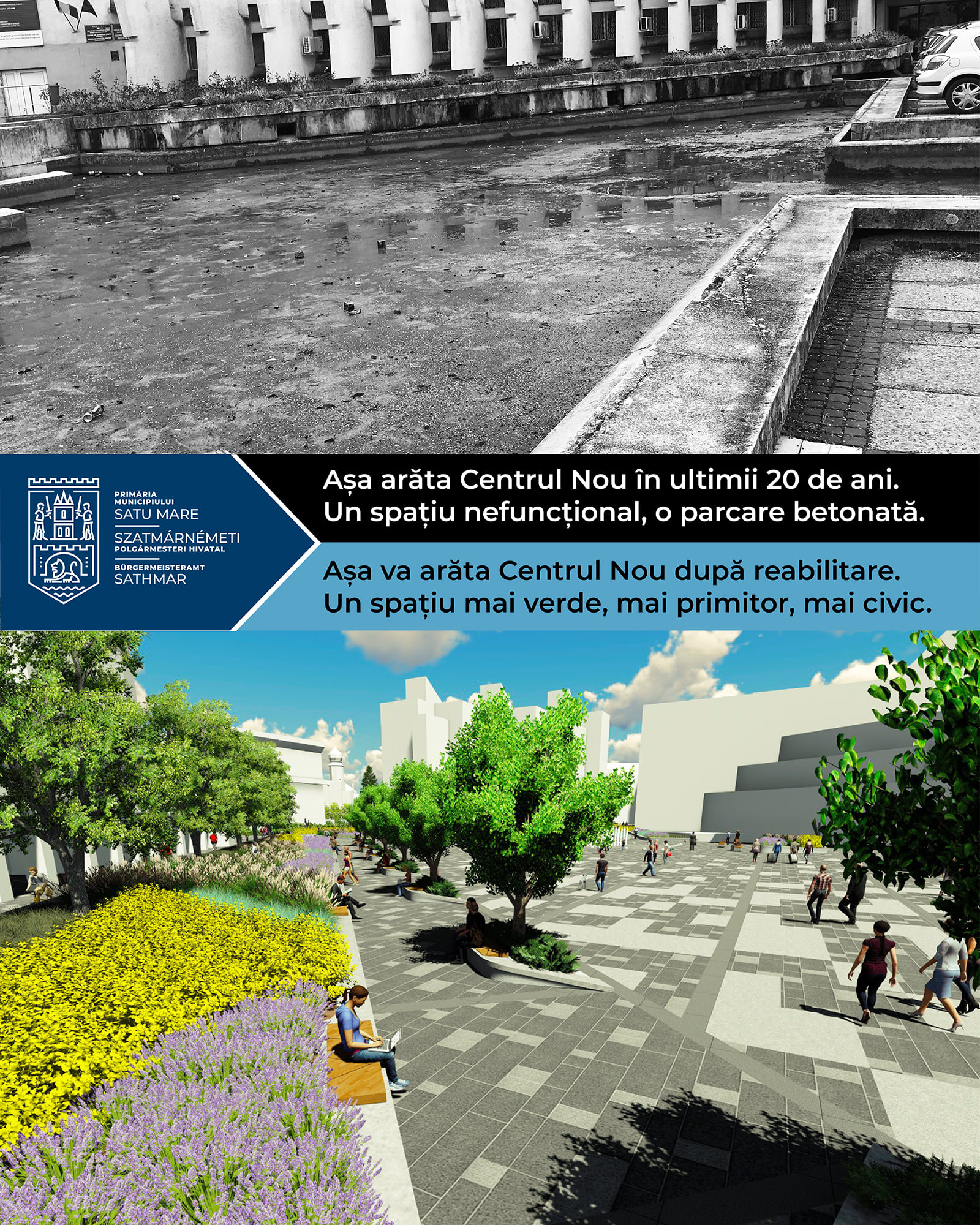 Mai mult decât atât, docuemntul mai sus amintit a fost însoţit de o serie de fotografii ÎNAINTE şi DUPĂ care arată cum a arătat şi cum va arăta Centrul Nou după ce va fi reabilitat şi modernizat.