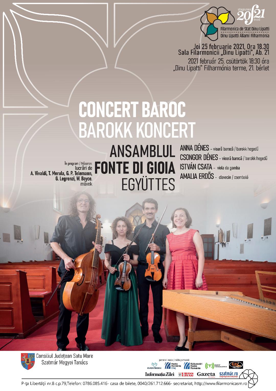 Melomanii sătmăreni vor avea ocazia să asculte, joi, în Sala Filarmonicii Dinu Lipatti un inedit concert de muzică baroc. Cei care vor aduce prin muzica lor atmosfera curţilor medievale de odinioară sunt din Cluj Napoca şi sunt grupaţi sub titulatura Fonte di Gioia.