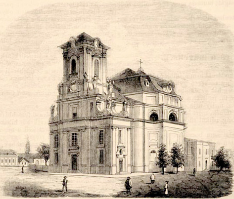 Navei de plan rectangular, cu colţurile rotunjite, i-a fost adăugat un sanctuar mai îngust, încheiat cu o absidă semicirculară şi un hol de aceleaşi dimensiuni în dreptul uşii de intrare, iar de o parte şi de cealaltă a sanctuarului, au fost construite două sacristii, având câte un oratoriu în partea superioară. Corul este susţinut de piloni situaţi în holul dinspre vest şi prevăzut cu o balustradă arcuită. Accesul în cor se face din exterior, prin două scări separate alipite turnului, de o parte şi de alta a acestuia. În interior, orientarea mobilierului liturgic este fie centrală, fie longitudinală. Peretele interior al bisericii, divizat cu ajutorul pilaştrilor, este prevăzut cu nişe de mărime variabilă, conţinând icoane realizate de maestrul vienez Johann Ignatz Cymbal. Şase dintre cele opt altare secundare ale edificiului de cult sunt realizate în stil baroc, care de la stânga la dreapta bisericii, altarele sunt închinate lui Sf. Andrei de Avellino, Sf. Iosif, Sf. Anton de Padova, Sf. Ioan Nepomuk, Sf. Treime şi Sf. Fecioare alături de cei trei Sfinţi Regi ai Ungariei.