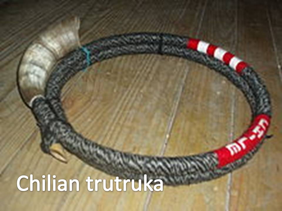 Trutruka - este uninstrument de suflat, care face parte din familia trompetelor. Se găsește în principal printre populațiile Mapuche din Chile și Argentina, producând un sunet, cu câteva variații tonale.