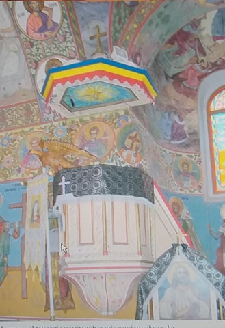 Faţadele laterale sunt articulate de lezene cu capiteluri profilate şi de ferestre cu închidere semicirculară, iar în axa mediană a faţadei nordice şi în peretele absidei laterale sudice se află câte o intrare secundară de formă dreptunghiulară. Prin intrarea principală, se ajunge în pronaosul de sub turlă, iar din partea dreaptă a acestuia porneşte scara spre tribuna cu parapetul plin. Decoraţia interioară a bisericii este definită de vitraliile colorate ale ferestrelor, respectiv de picturile murale în tehnica el secco, care acoperă pereţii şi bolţile semicilindrice cu penetraţii ale interiorului bisericii. Ocupând întreaga deschidere a arcului de triumf, iconostasul amplu desparte nava de altar. Iconostasul de factură barocă se compune din şiruri suprapuse de reprezentări iconografice de tradiţie bizantină încadrate de chenare traforate tripartite şi cvadripartite. Este demn de menţionat valoroasa decoraţie traforată a porţilor împărăteşti ce se deschid înspre altar, cu ornamente conţinând motive vegetale din frunze, vrejuri şi trandafiri. În faţa iconostasului, în partea dreaptă este amplasat amvonul revopsit. Conform aspectului parapetului şi coronamentului se poate presupune, că provine de la sfârşitul secolului al XIX-lea.