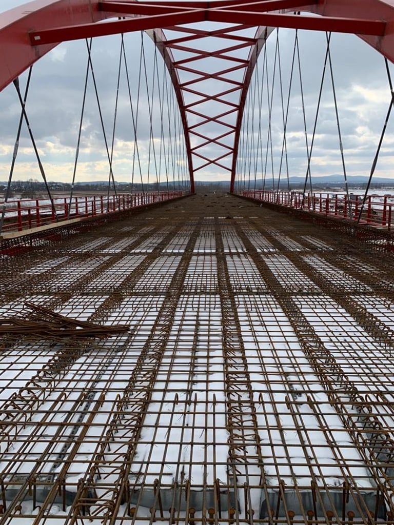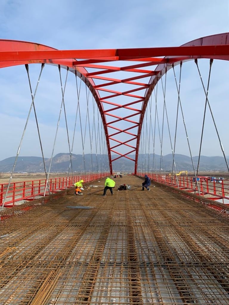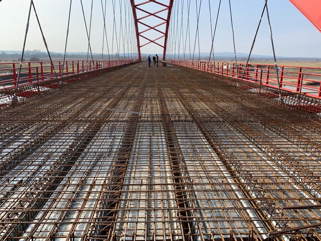 Tot săptămâna aceasta încep lucrările la cofrarea podului propriu-zis, după care, peste aproximativ o săptămană, se va începe turnarea plăcii de beton, concomitent de pe ambele maluri pentru a asigura rezistența structurii metalice.