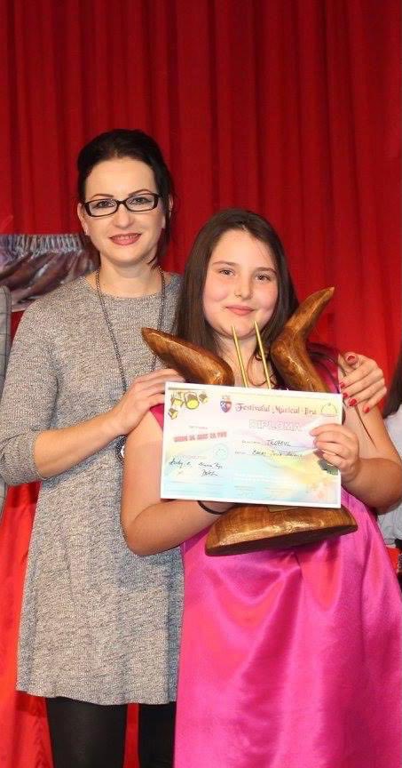 Prima experiență cu scena, ne spune Iulia, a fost una foarte plăcută, fără emoții, la festivalul Ursulețul de Aur din Baia Mare, unde a participat alături de colegii și profesoara ei din Oradea.