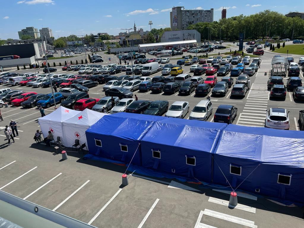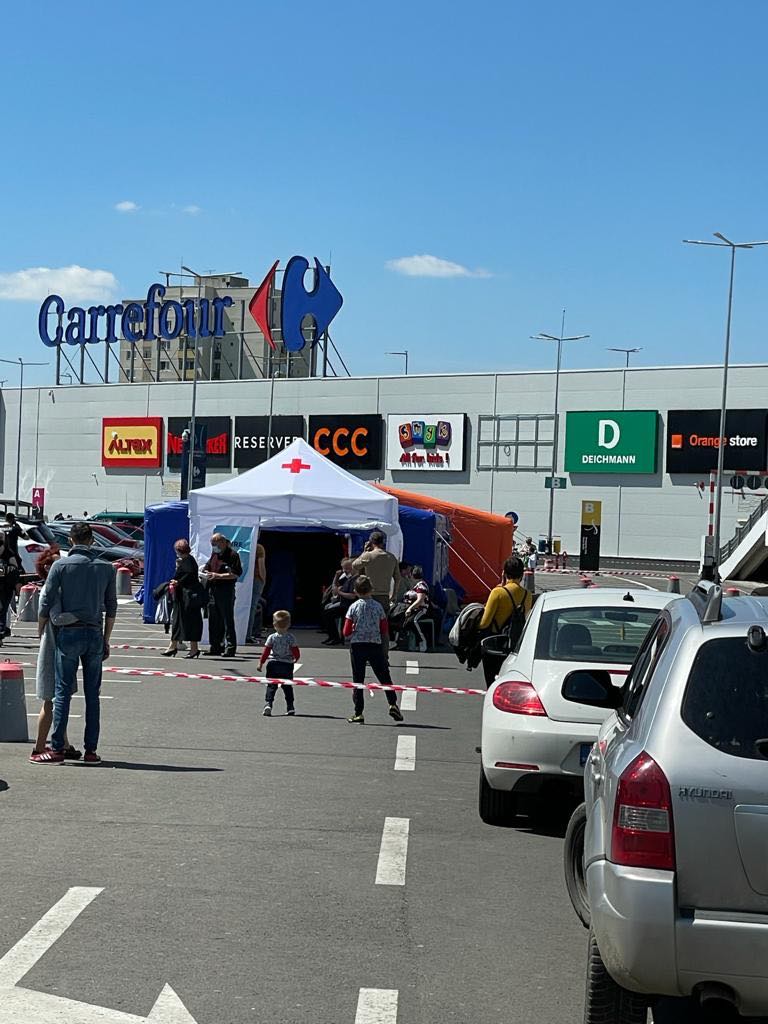Nu doar ieri se înghesuia lumea la rând la vaccinare ci și azi, după ce au ieșit de la Biserică prima oprire a fost la corturile din parcarea mall-ului.