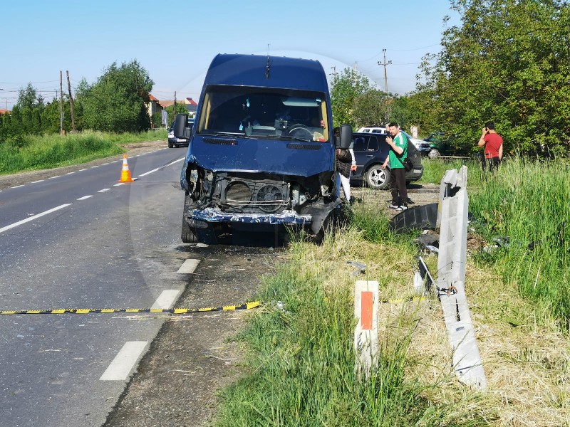 Conform Presa SM, autoutilitara, condusă de un șofer de 40 de ani, circula pe drumul principal, când autoturismul condus de o șoferiță de circa 35-40 de ani i-a ieșit în cale.