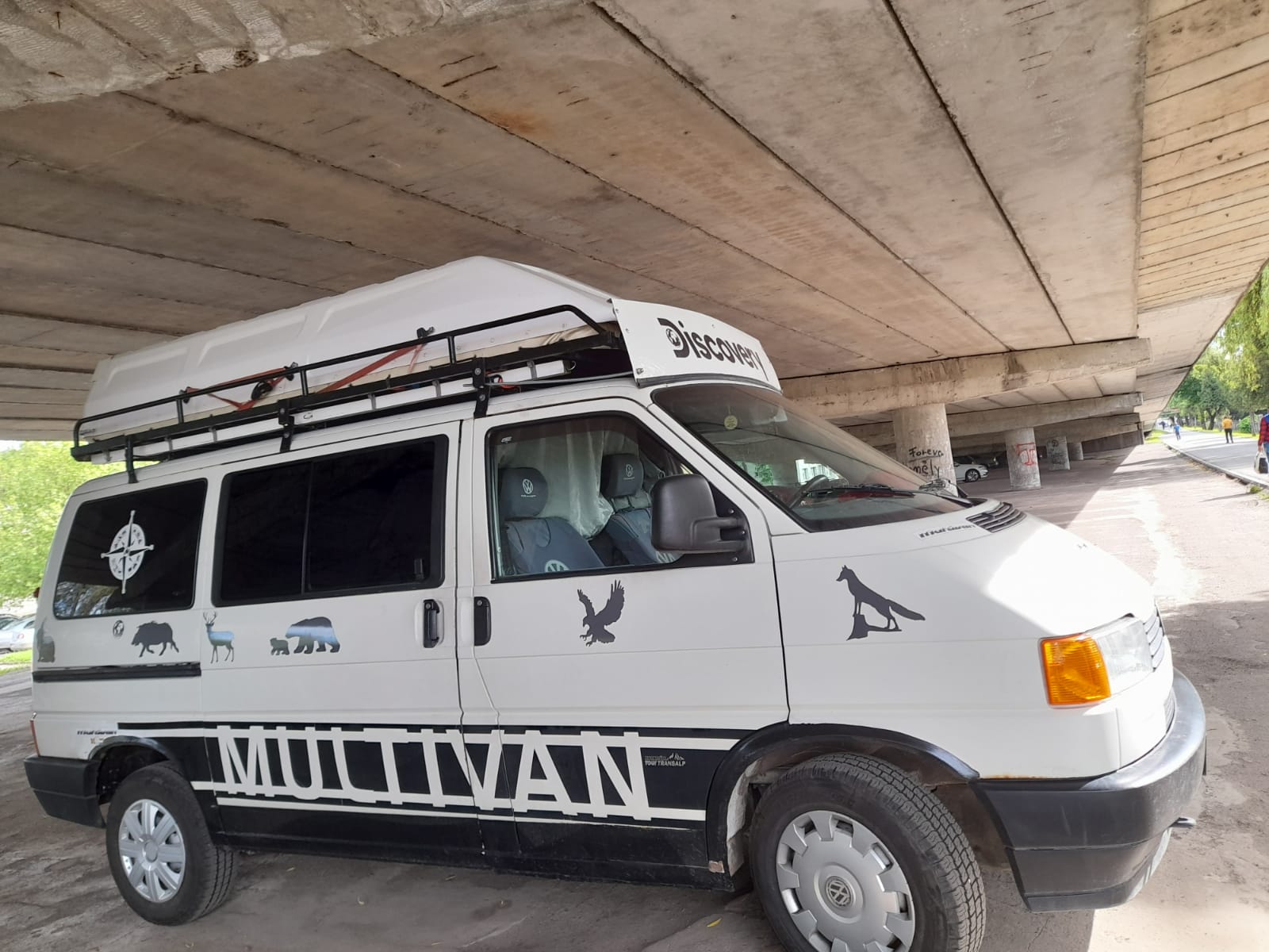 În micul nostru oraș se pot găsi lucruri interesante la tot pasul. Sub podul Decebal, falnic parcată am găsit faimoasa dubă a celor de la Discovery. După cum arată, noi zicem că este o replică fericită.