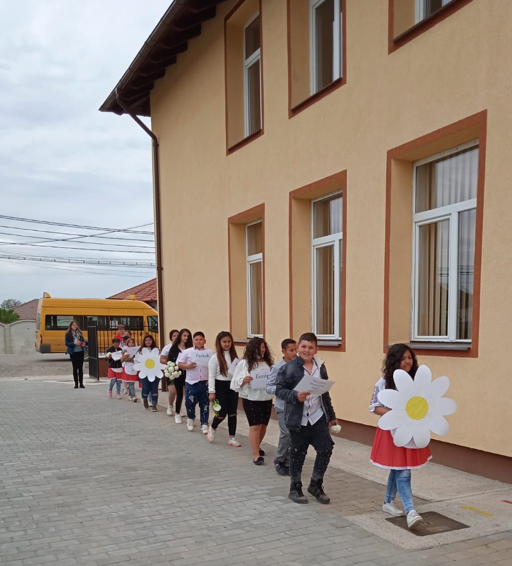 În contextul celor două evenimente, sâmbătă 22 mai, școala s-a îmbrăcat în straie de sărbătoare: elevii îmbrăcați în costume din materiale reciclabile, alții purtând în mână buchete de flori, alții coronițe, au desfășurat mica ,,paradă a florilor,, defilând în curtea școlii cu oprire în parcul lor cu flori unde a urmat festivitatea de marcare a evenimentelor ecologice susținute de către dna director Simona Iederan, dl.director adjunct Hajer Octavian și dna Elisabeta Bekessy președintele asociației , premierea costumelor și a claselor care au realizat aranjamentele de flori din anvelope uzate.