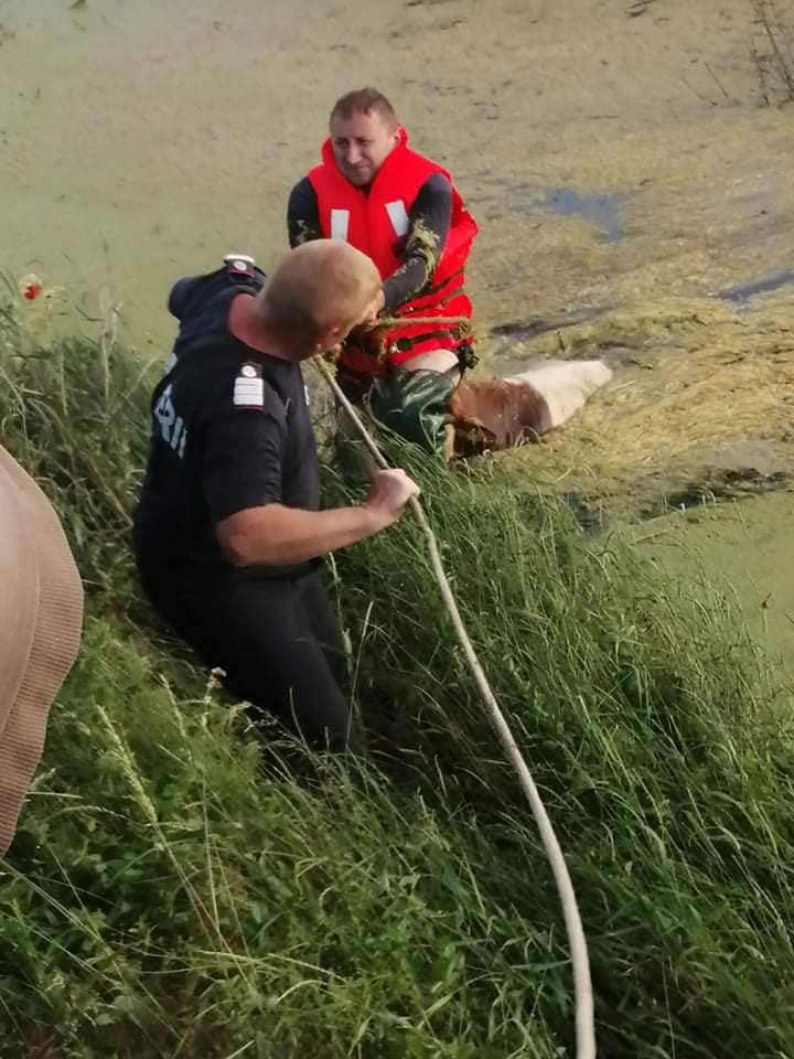 Ca urmare a unui apel venit pe numărul de urgență 112, ieri seara, în jurul orei 19:00, ISU Satu Mare a intervenit cu 2 echipaje, în localitatea Berveni, pentru salvarea unei vaci căzute într-un lac cu apă.