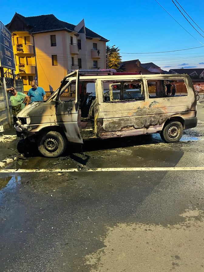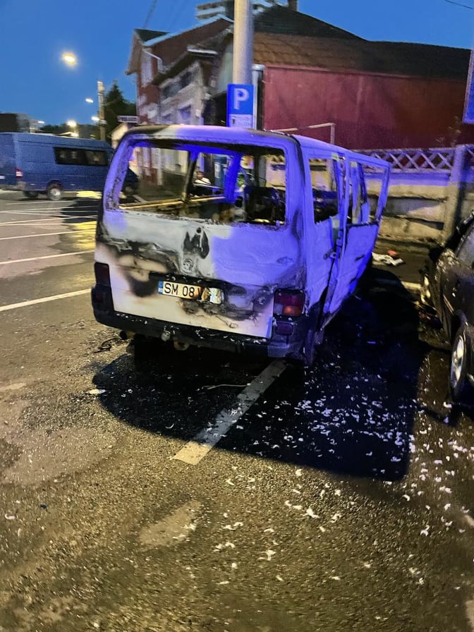 O autoutilitară a fost distrusă de flăcări în totalitate lângă Piața Mare din municipiul Satu Mare. Și mașina de lângă duba care a luat foc ,un Opel cu numere de Satu Mare a fost afectată.Totul s-a întâmplat astăzi, în jurul orei 21.30. La fața locului au ajuns mai multe echipaje ale Inspectoratului Județean pentru Situații de Urgență Satu Mare, care au reușit să stingă incendiul.