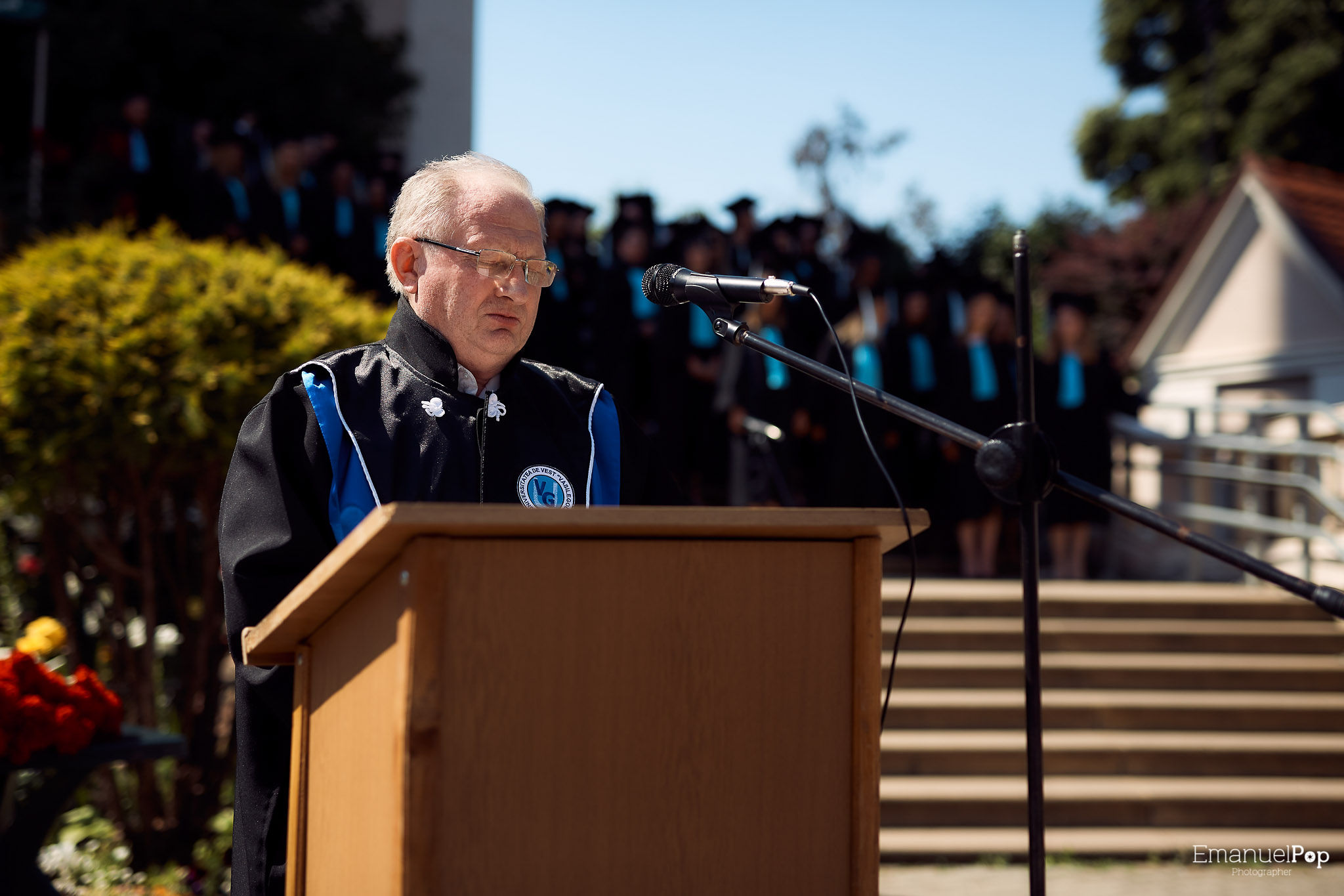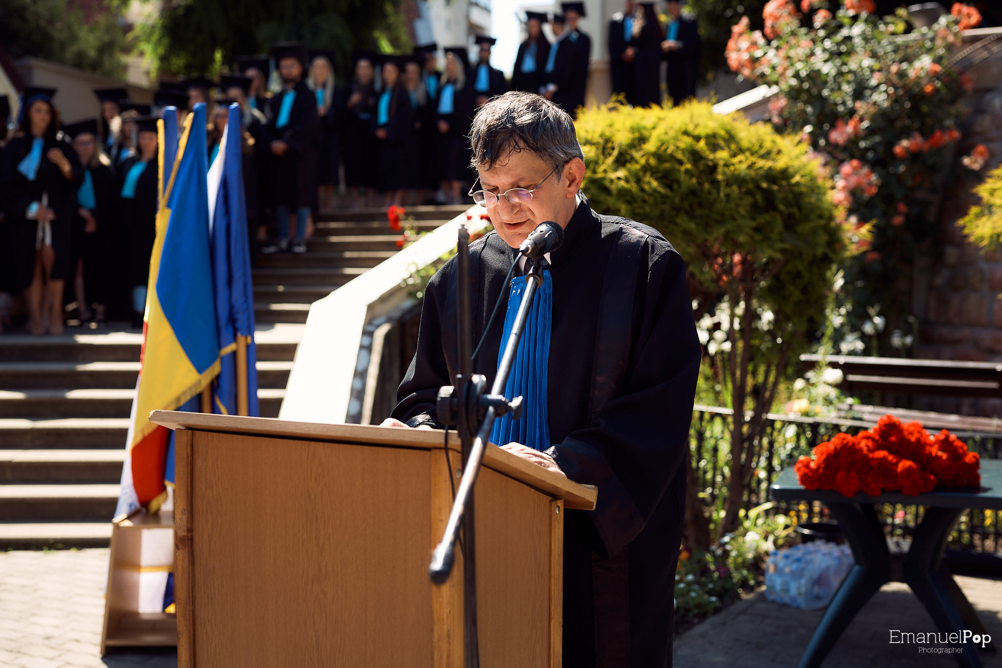 Cursul festiv s-a încheiat cu urale prin aruncarea în sus a pălăriilor în acordurile Odei Bucuriei de Beethoven.