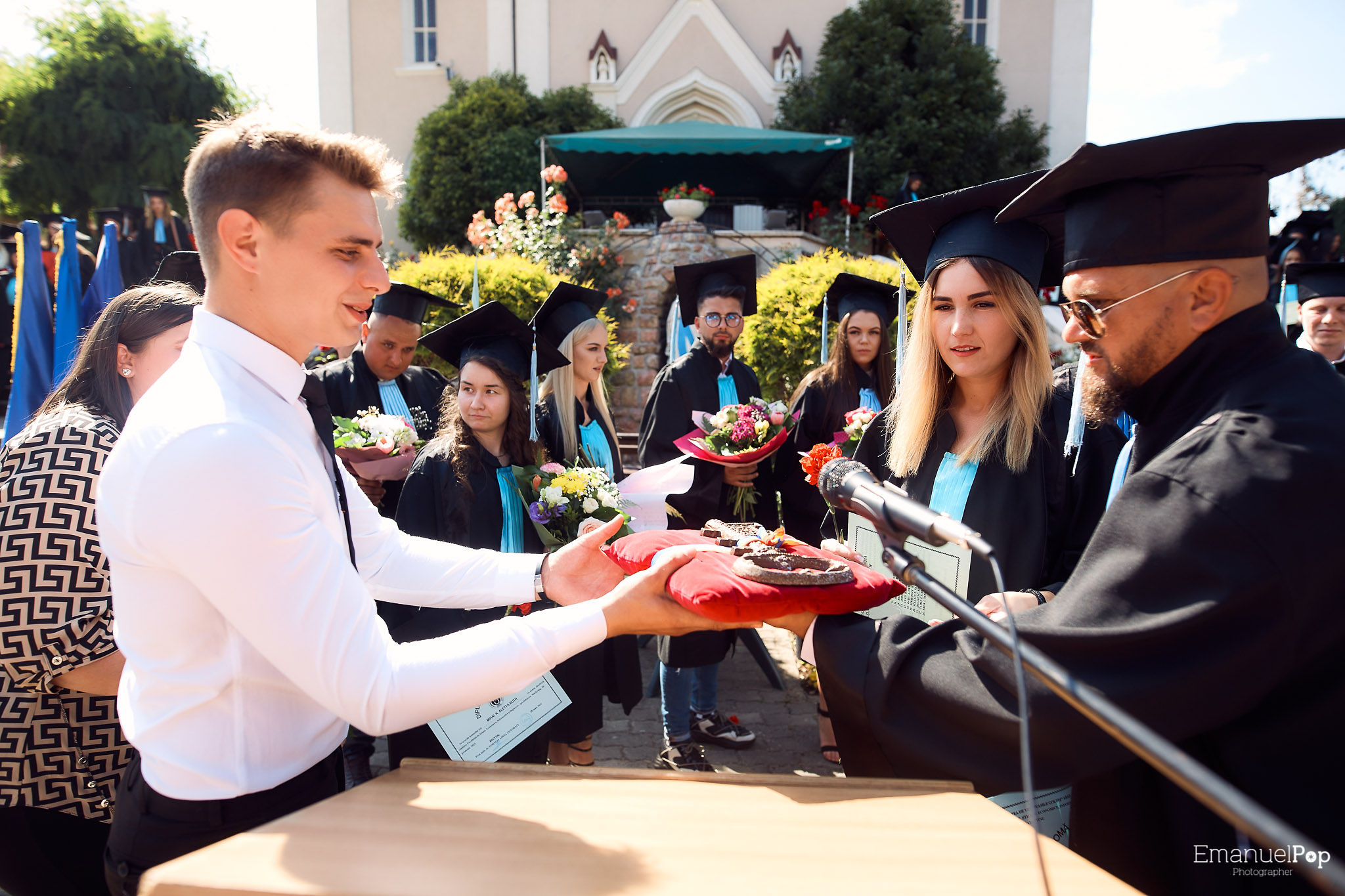 Înmânarea diplomelor și a florilor fost deosebit de emoționantă, când absolvenții au fost prezentați nominal publicului. Aceasta a fost urmată de predarea ștafetei, simbolizată de o cheie, între generații.