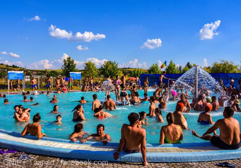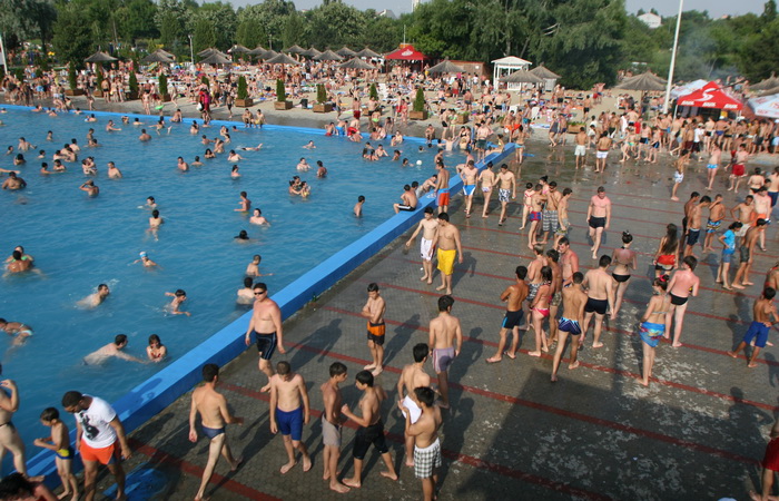 Tineri se racoresc in bazinele strandului Crangasi, in Bucuresti, sambata, 13 iunie 2010. Meteorologii au anuntat ca, de sambata de la pranz si pana duminica seara, vremea va fi caniculara in intreaga tara, in acest sens fiind emisa o avertizare cod galben. GABRIEL PETRESCU / MEDIAFAX FOTO