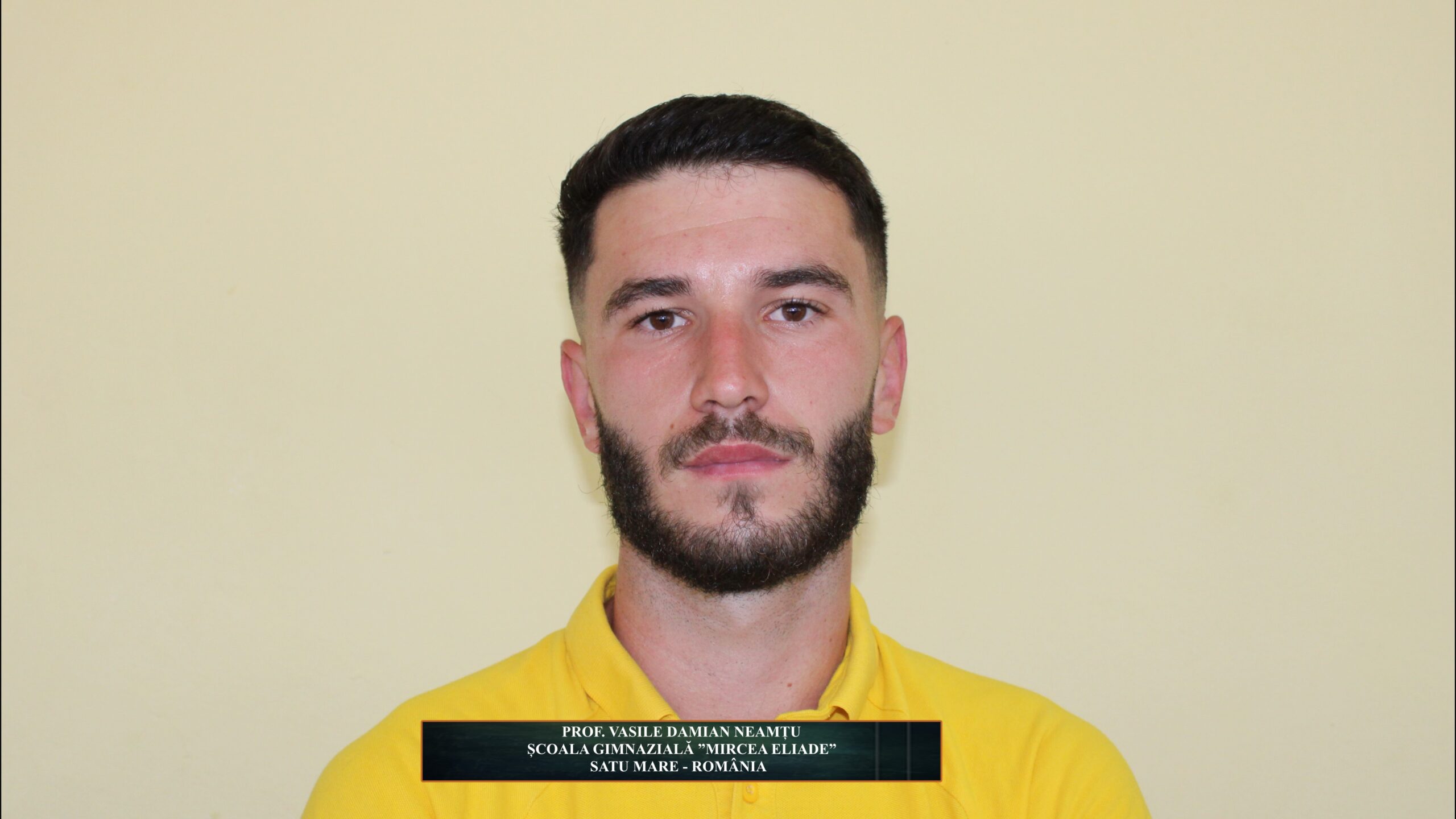 ”Sunt profesor de Educație Fizică și Sport la această școală și mi-am început activitatea didactică începând cu anul școlar 2020 – 2021, fiind la început de drum și de carieră. Îmi place foarte mult această școală, m-am acomodat ... având în vedere că am sprijin și din partea colegilor, care mă susțin. Specialitatea mea este Educație fizică și sportivă cu specializarea ”Fotbal” (PROF. VASILE DAMIAN NEAMȚU - ȘCOALA GIMNAZIALĂ ”MIRCEA ELIADE” – SATU MARE)