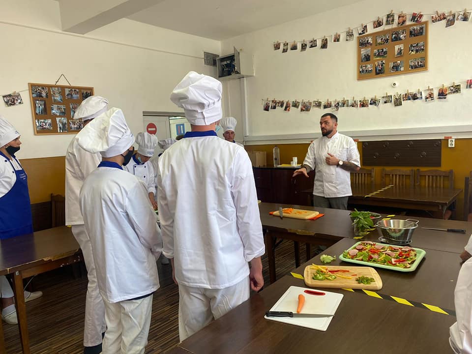 O astfel de activitate a găzduit colegiul nostru pe data de 6 iulie 2021, în cadrul Proiectului educațional ,,Tehnologia modernă în laboratorul școlii, o importanță majoră în instruirea practică”, în parteneriat cu IȘJ Satu Mare și o firma privată, proiect coordonat de doamnele profesoare Lavinia Mezat, Cristina Maxim, Silvia Voineag și care vizează atragerea de profesioniști din domeniul HoReCa pentru a ne sprijini în dotarea laboratorului de specialitate al școlii.