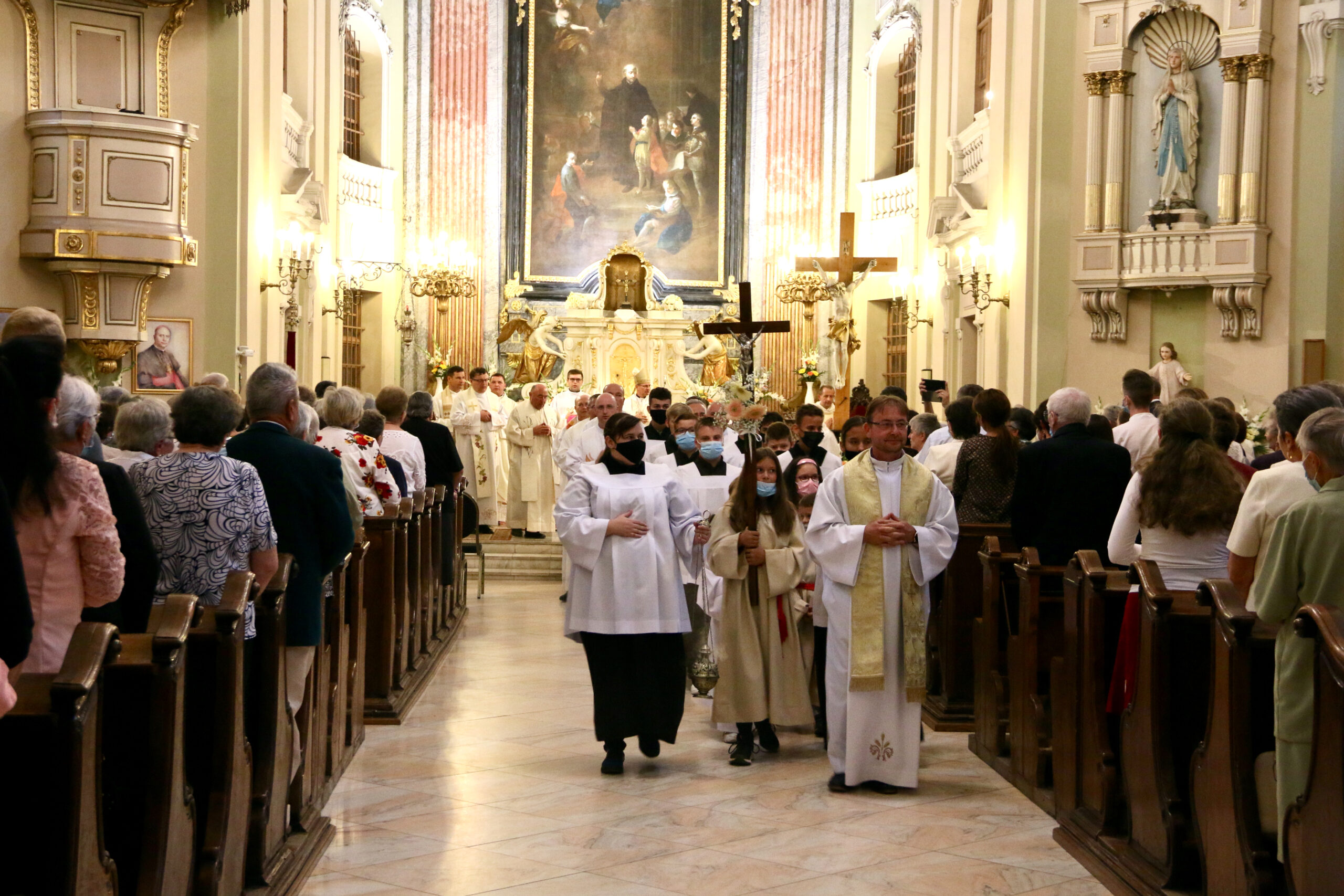 care au participat la hramul bisericii, în sărbătoarea Sfântului Iosif de Calasanz, Sfânta Liturghie fiind celebrată de PS Jenő SCHÖNBERGER, Episcop Romano – Catolic de Satu Mare și de un număr mare de preoți.