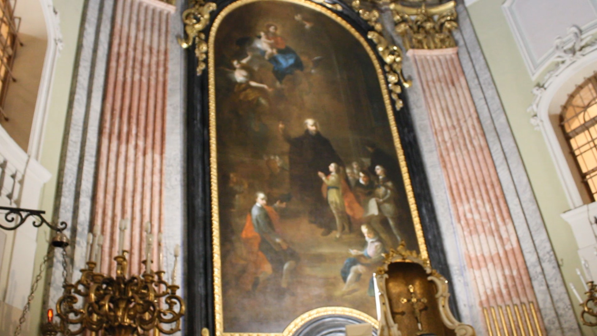 Îl prezintă pe fondatorul ordinului piarist, Iosif de Calasanz, arătând cu brațul drept spre Sfânta Fecioară, apărând dintre nori, în timp ce mâna stângă se odihnește pe umărul unui băiețel care are mâinile împreunate pentru rugăciune ...