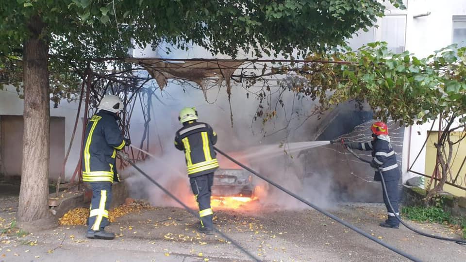 Ajunse la fața locului, forțele profesioniste au găsit incendiul manifestându-se cu flacără, generalizat, la autoturismul parcat în fața garajului de la subsolul blocului.