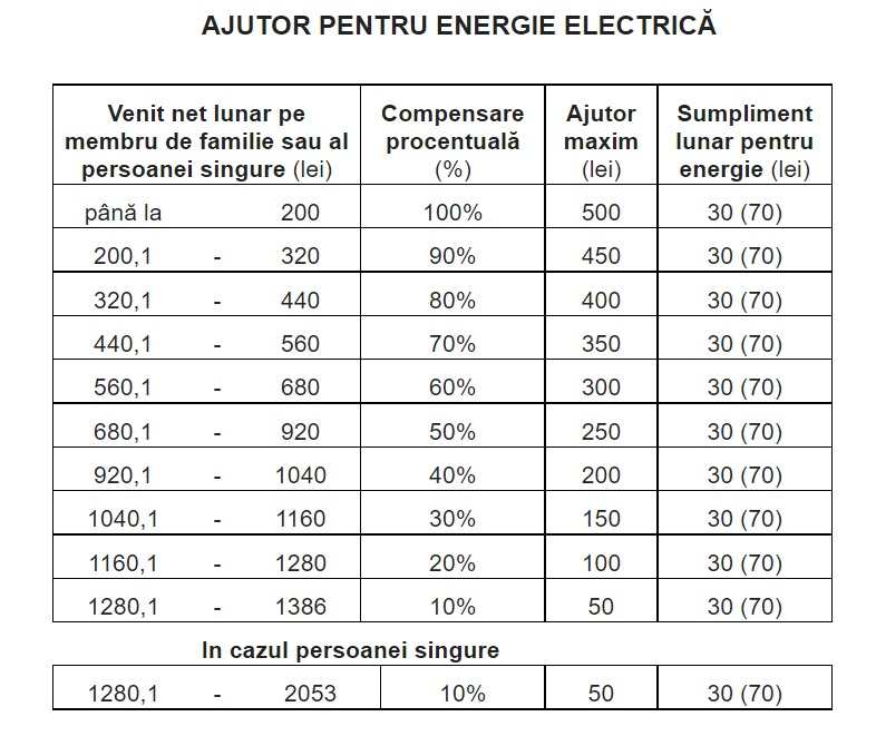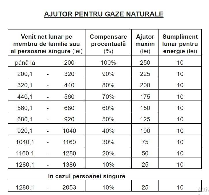 Ajutoarele care se acordă pentru gaze naturale, energie electrică şi combustibili