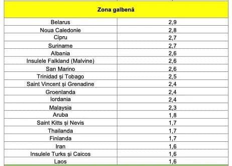 - în zona roșie au intrat: Germania, Elveția, Polonia, Norvegia, Statele Unite ale Americii, Liechtenstein, Andorra, Bosnia și Herțegovina, Macedonia de Nord, Azerbaidjan și Botswana;